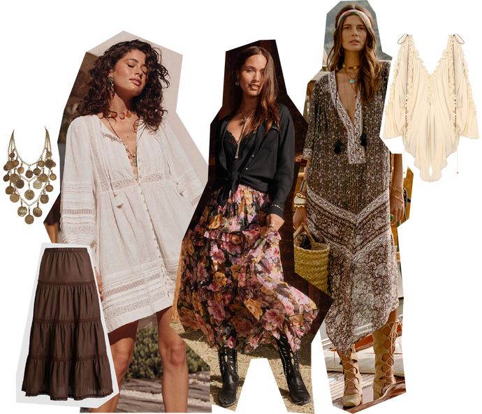 Styles: Flowy boho, floral, embroidery, artisanal detailing