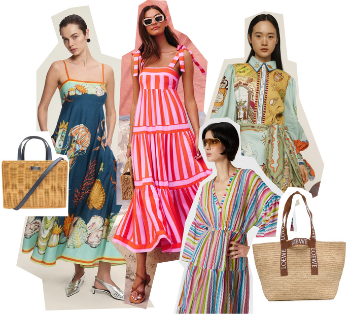 Styles: Sundresses, flowing fabrics, vibrant palette, nautical prints