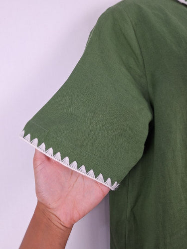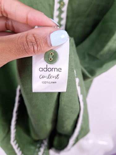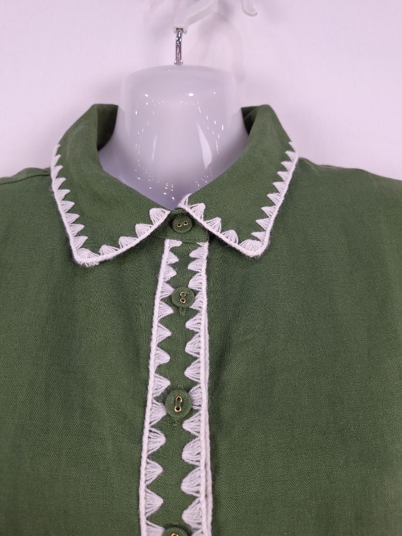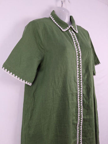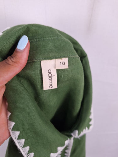 Adorne Moss Linen Chevron Stitch Mini Dress Size 10