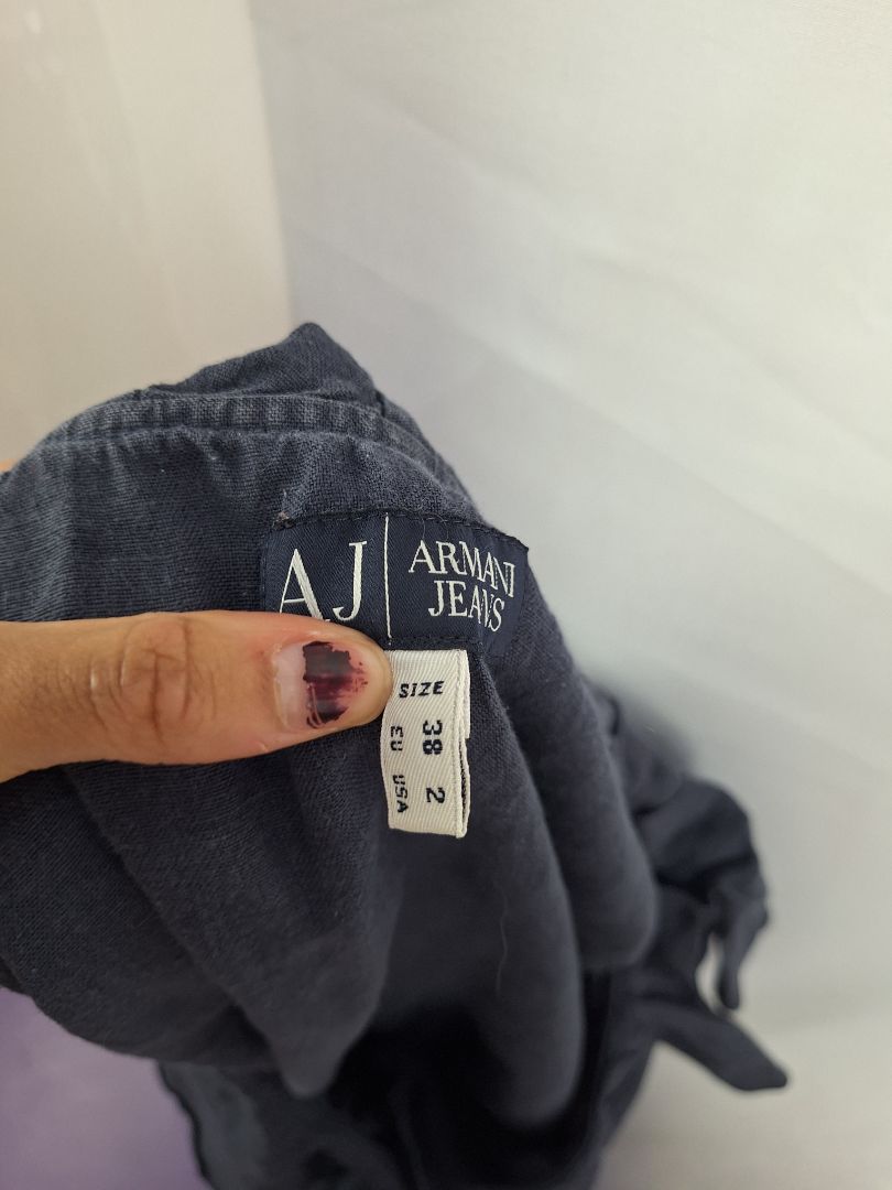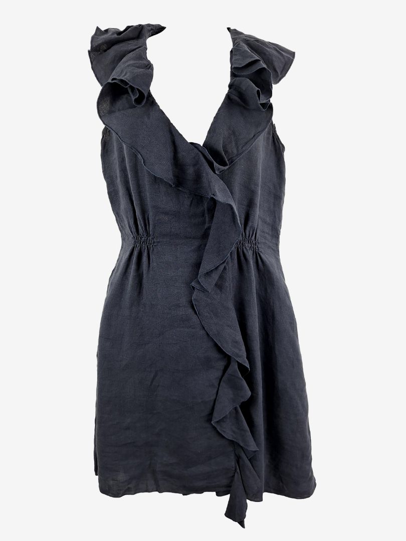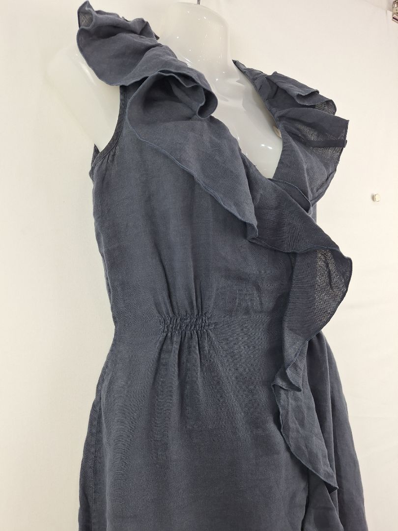 Armani Exchange Linen Navy Ruffle Dress Size 6
