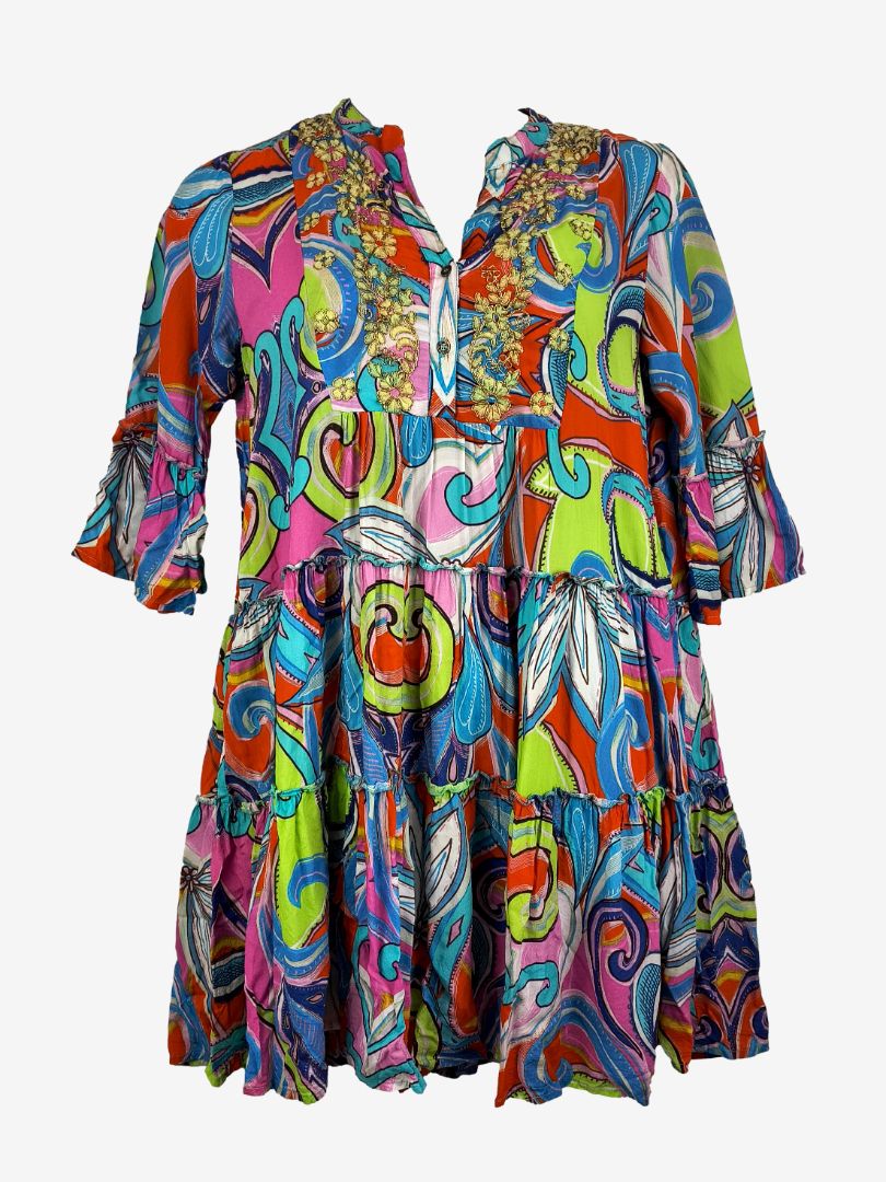 Assorted Brands Bright Gold Embroidered Mini Dress Size 14