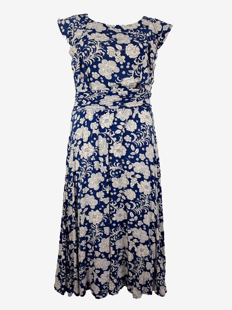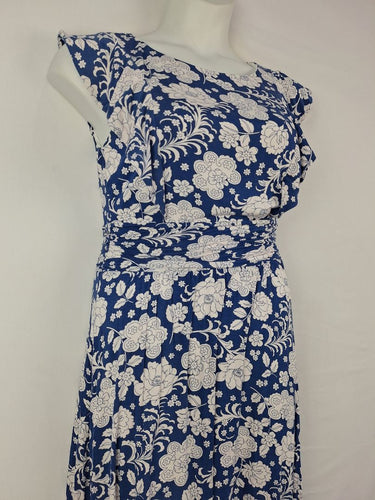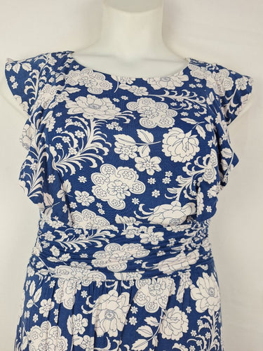 Boden Cobalt Frilled Soft Floral Midi Dress Size 12