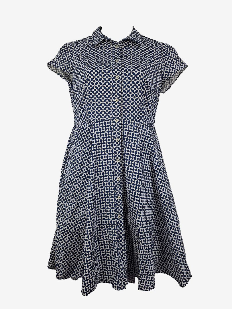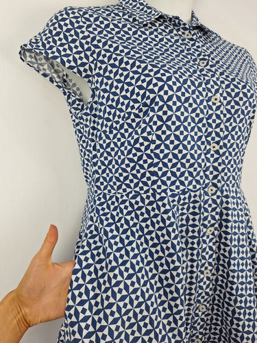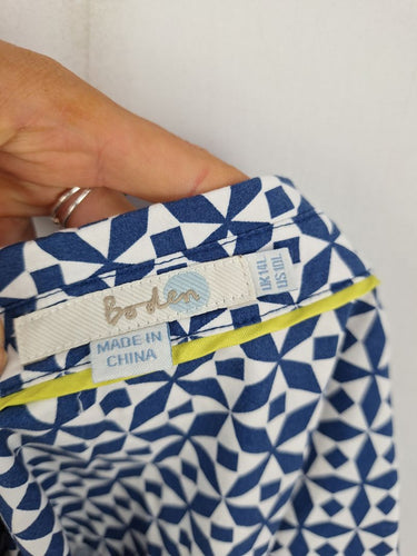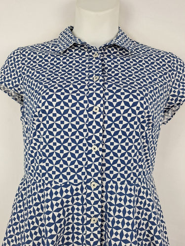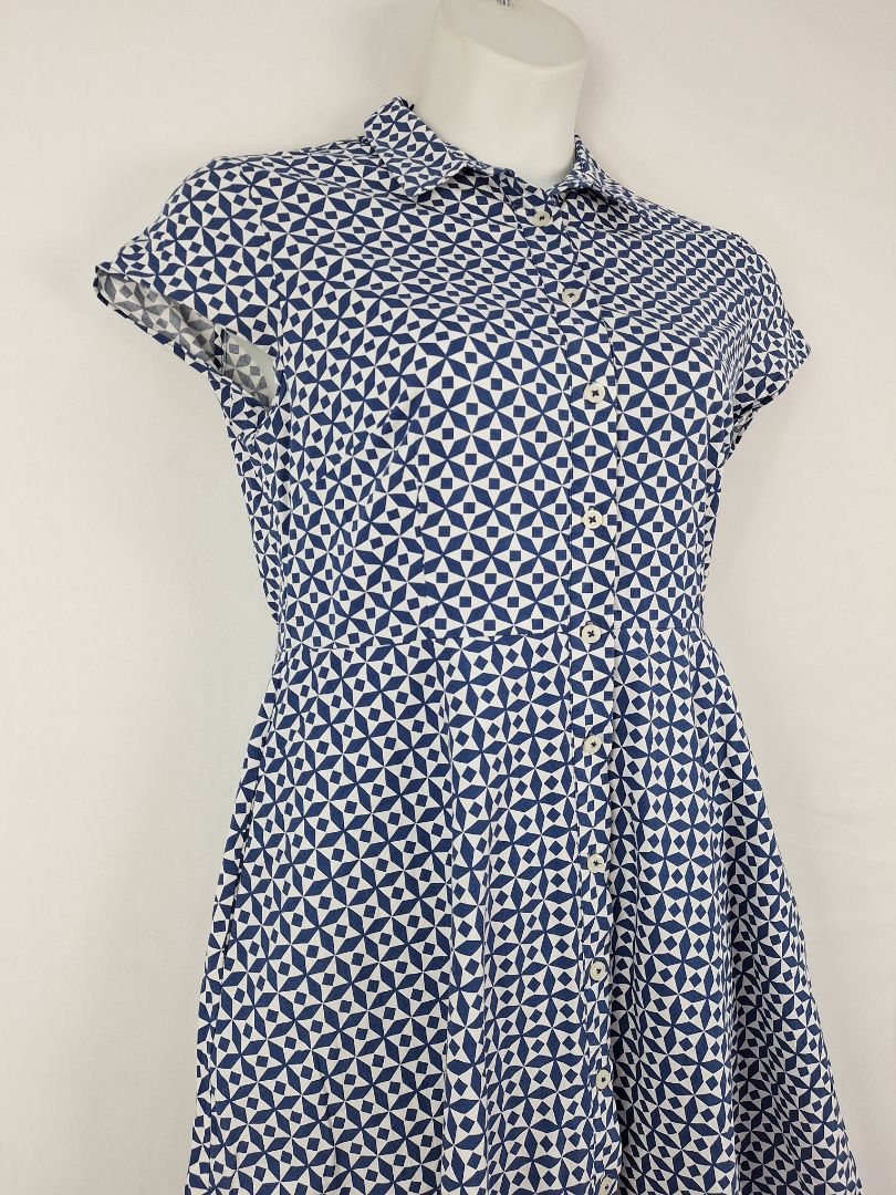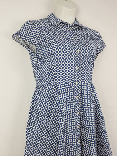Boden Ultra Marine Pattern Button Up Midi Dress Size 14