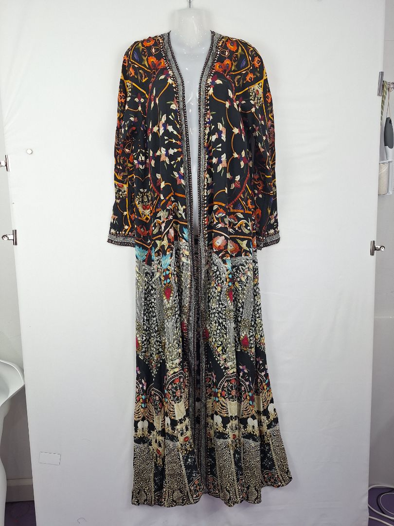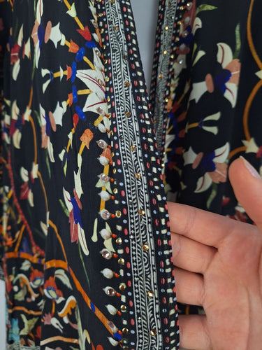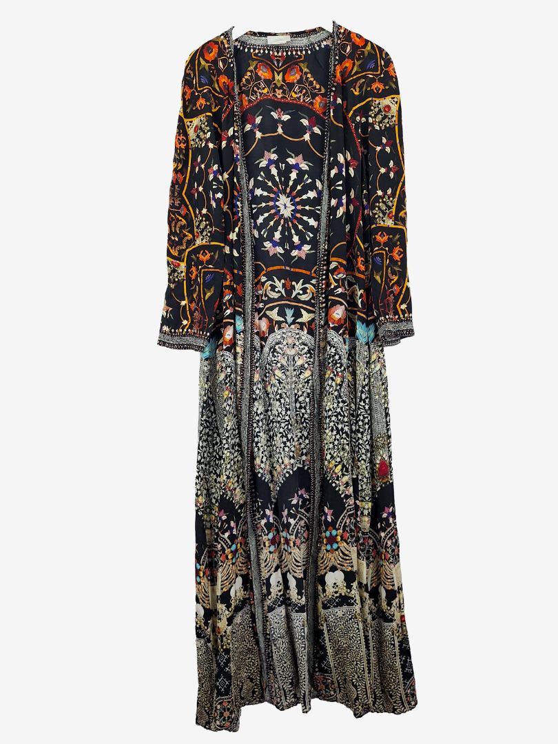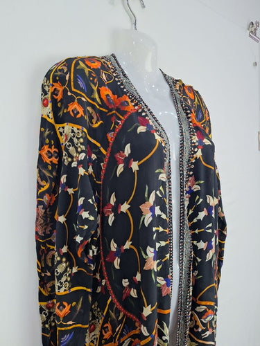 Camilla Sequined Dark Floral Silk Kimono One Size