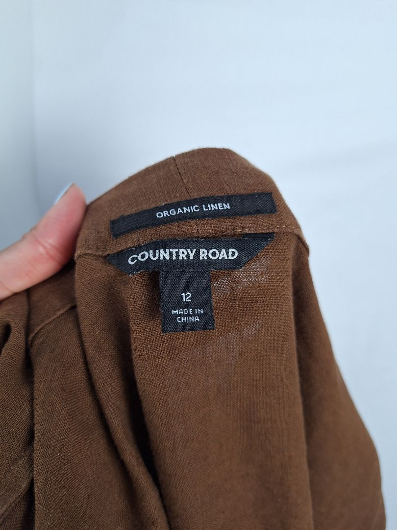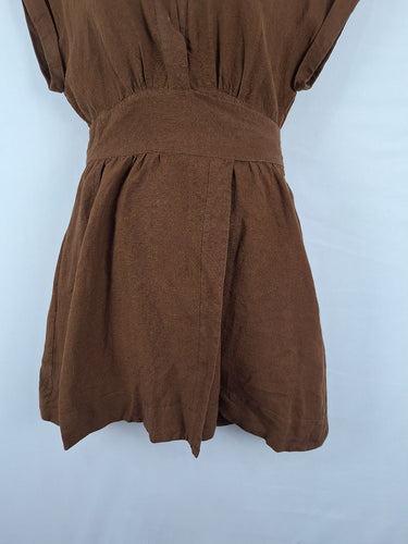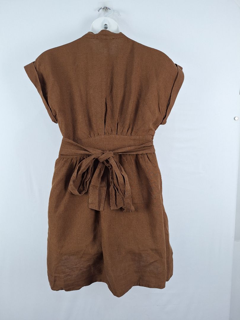 Country Road Chocolate Linen Mini Wrap Dress Size 12