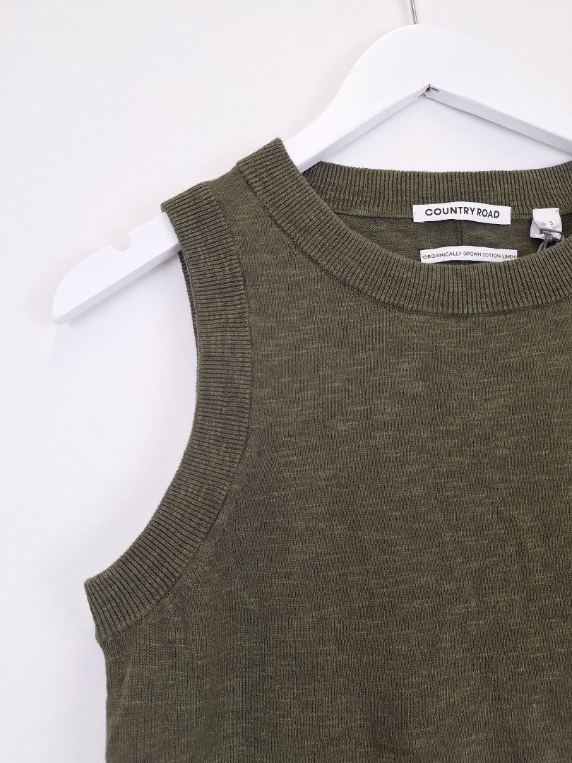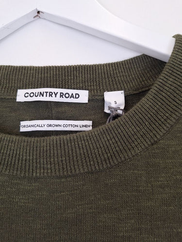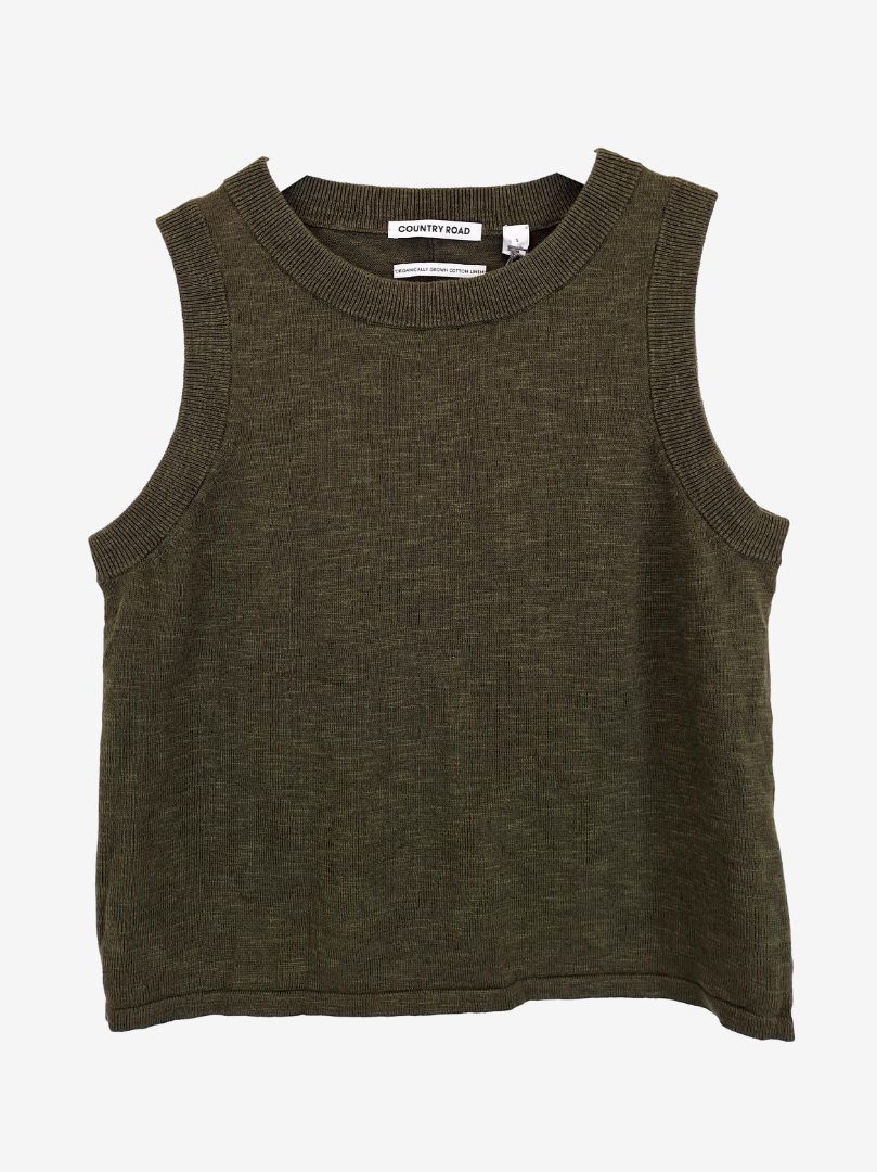 Country Road Cropped Olive Cotton Blend Knit Top Size S