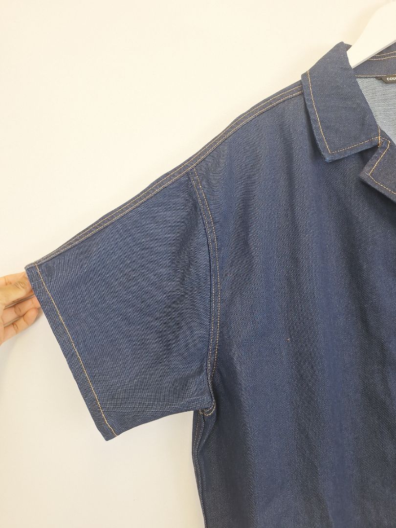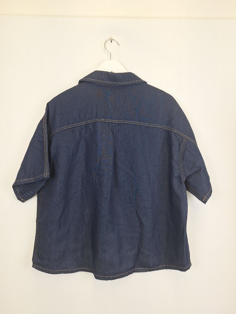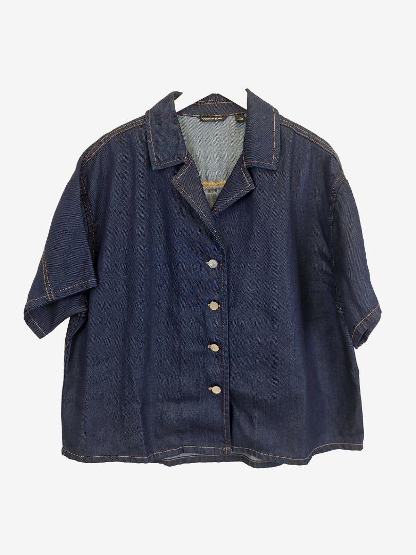 Country Road Dark Wash Denim Boxy Button Up Shirt Size 14
