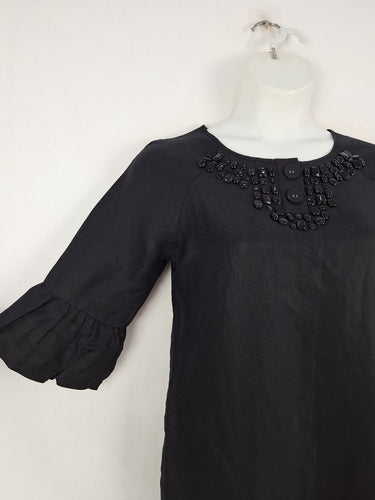 Country Road Effortless Linen Silk Blend With Beaded Neck Line Dress Size 10