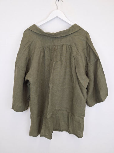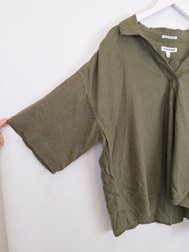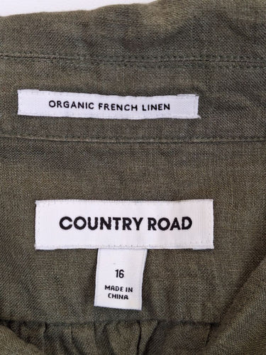 Country Road Khaki Linen Drop Shoulder Top Size 16