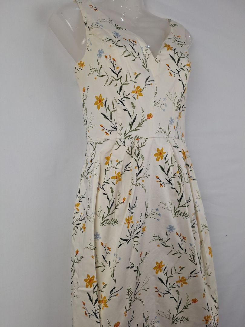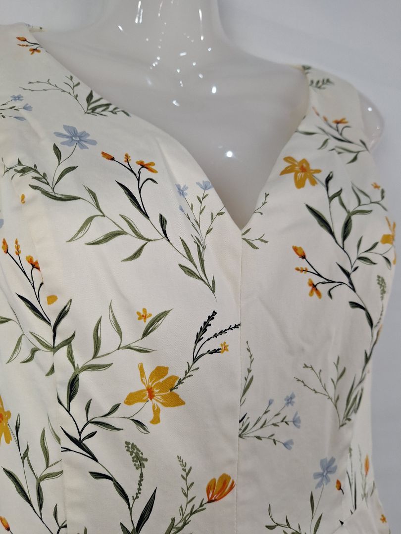 Cue Cream Flower Plunge Neck Mini Dress Size 6