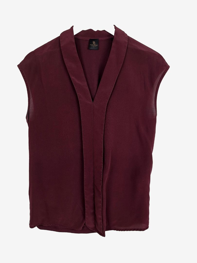 David Lawrence Deep Maroon Preppy Silk Blouse Size S