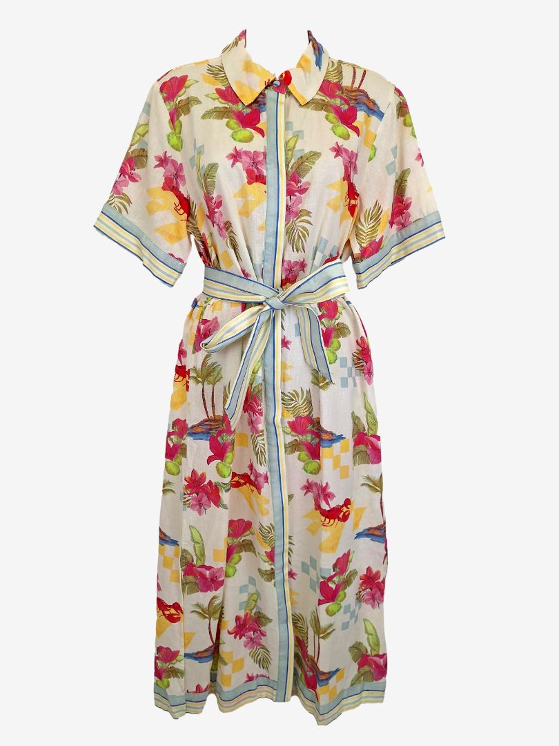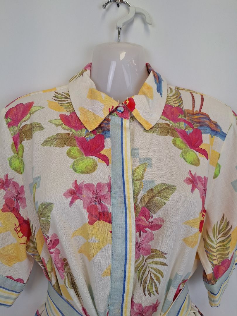 Decjuba Playful Vacation Linen Blend Dress Size 10