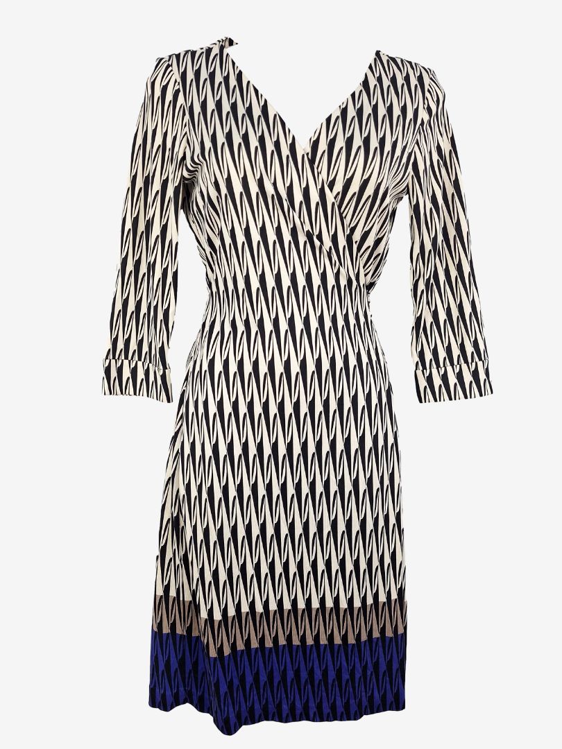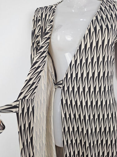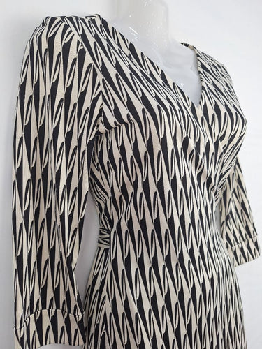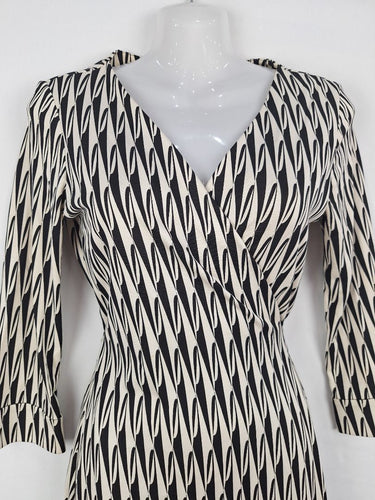 Diane von Furstenberg B&W Wrap LS Midi Dress Size 6