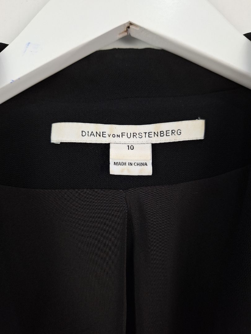 Diane von Furstenberg Leather Sleeves Funky Jacket Size 10