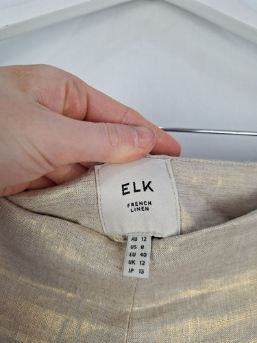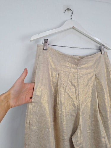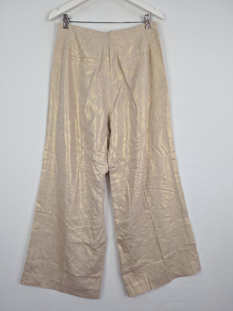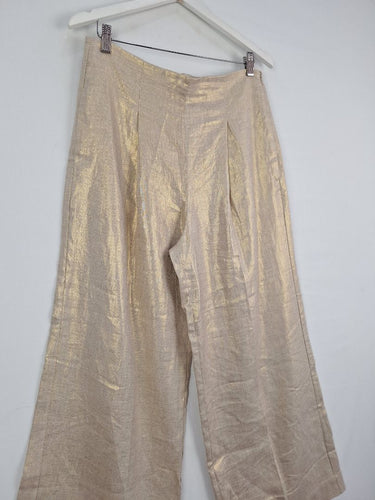 Elk Gold Sheen French Linen Wide Leg Pants Size 12