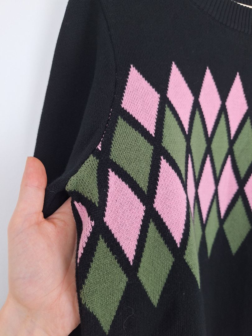 Frock Me Out Argyle Print Knit Jumper Size M