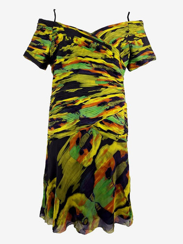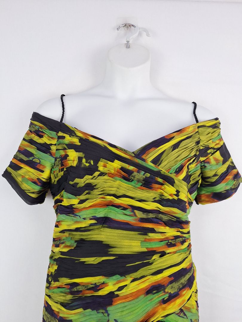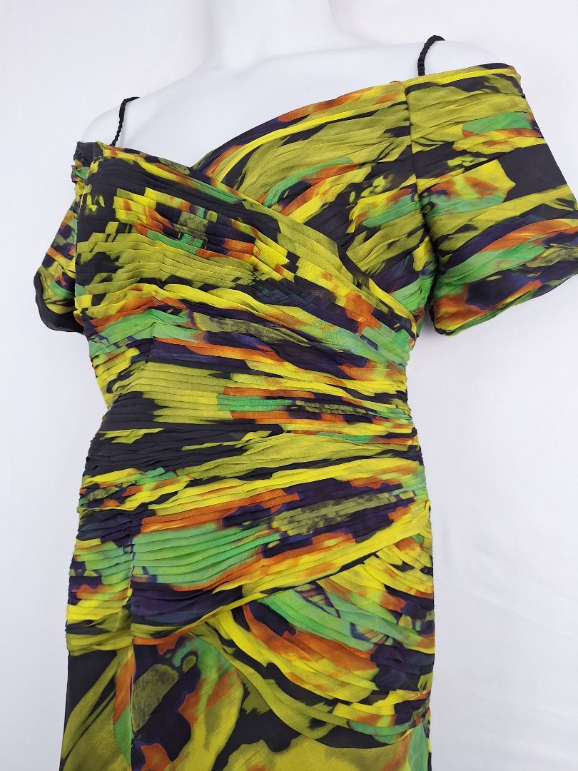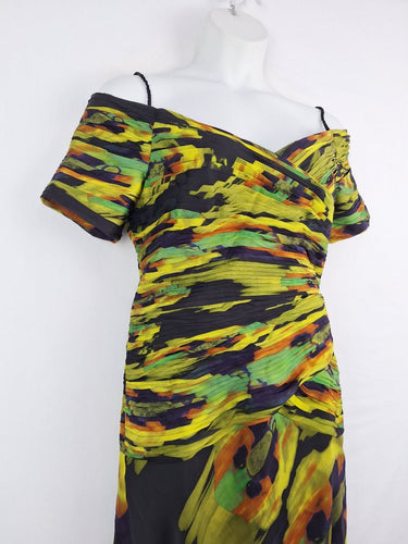 George Gross Off Shoulder Layered Pleat Midi Dress Size 14