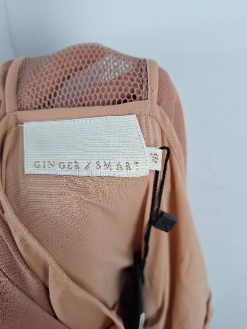 Ginger & Smart Blush Mesh Sleeve Cross Front Dress Size 16