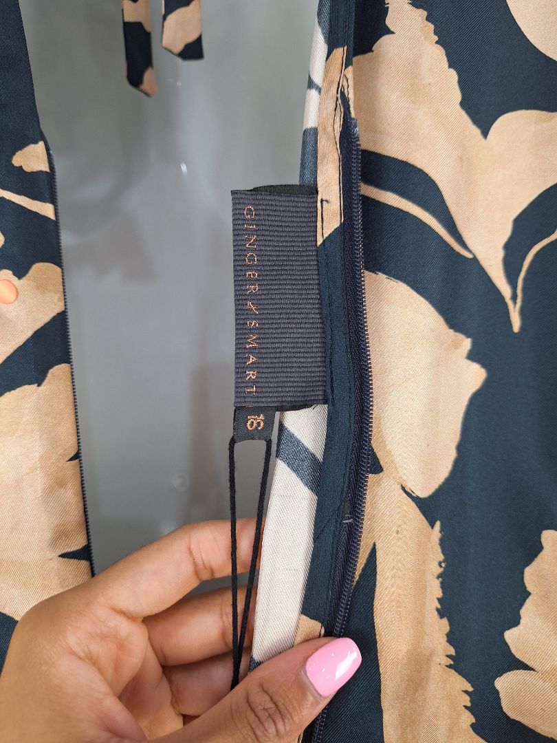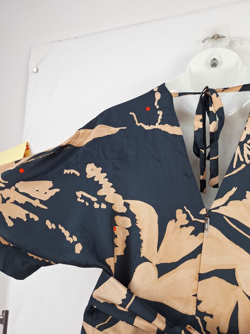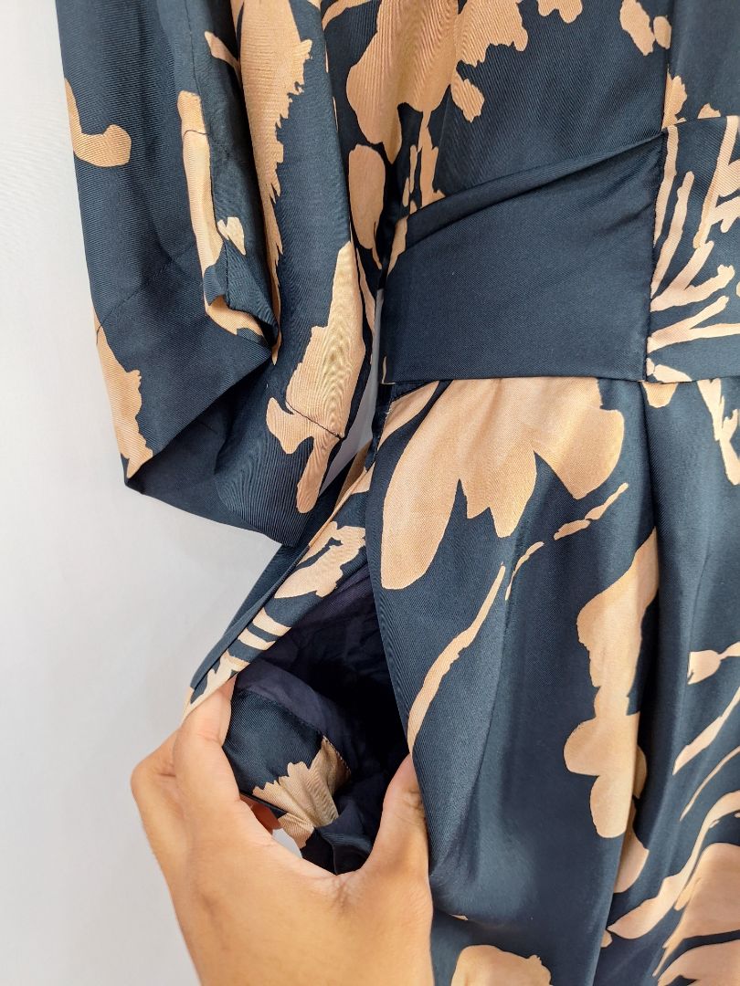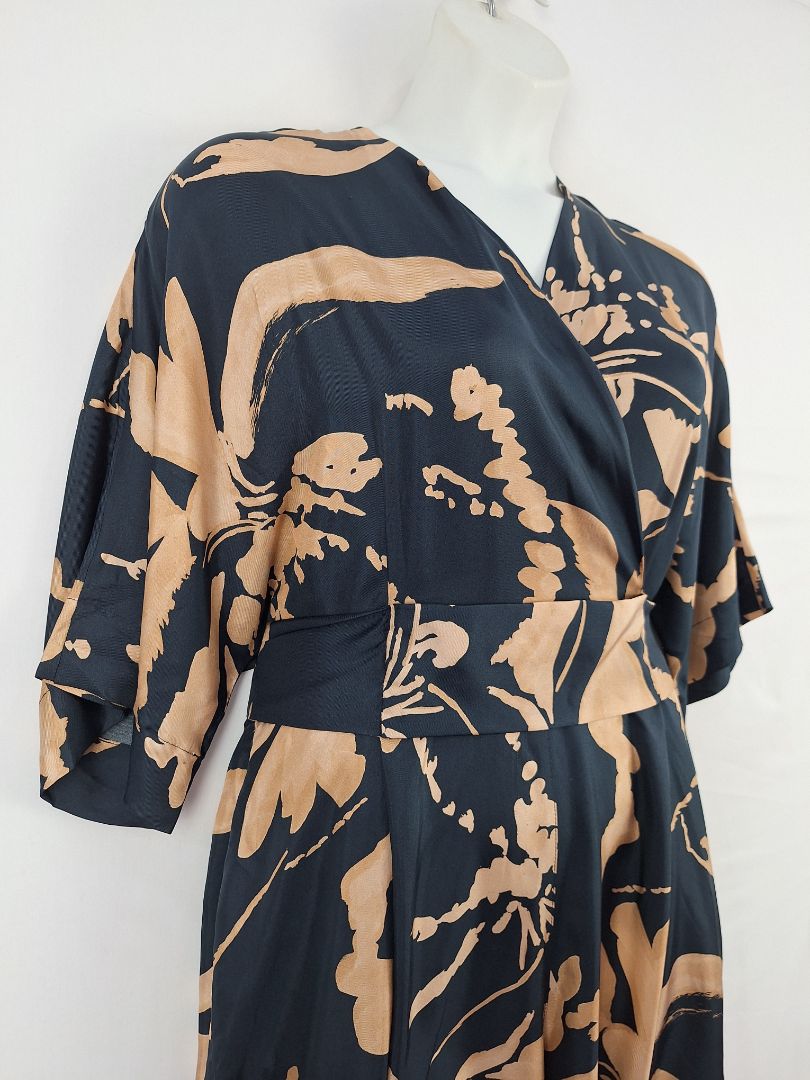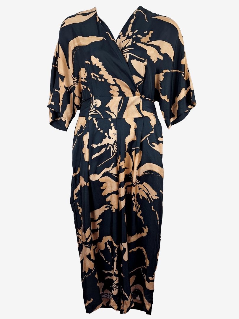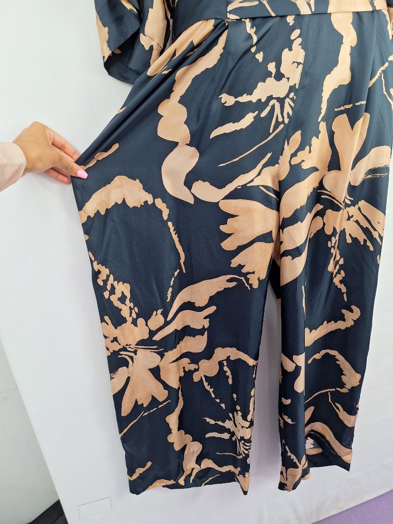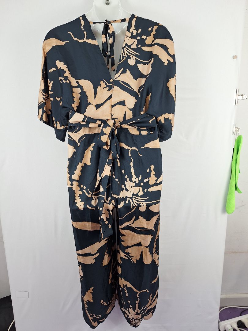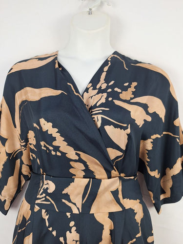 Ginger & Smart Navy Copper Draped Silk Jumpsuit Size 16