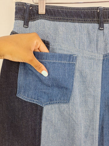 Gorman Mixed Wash Denim Panelled Skirt Size 16