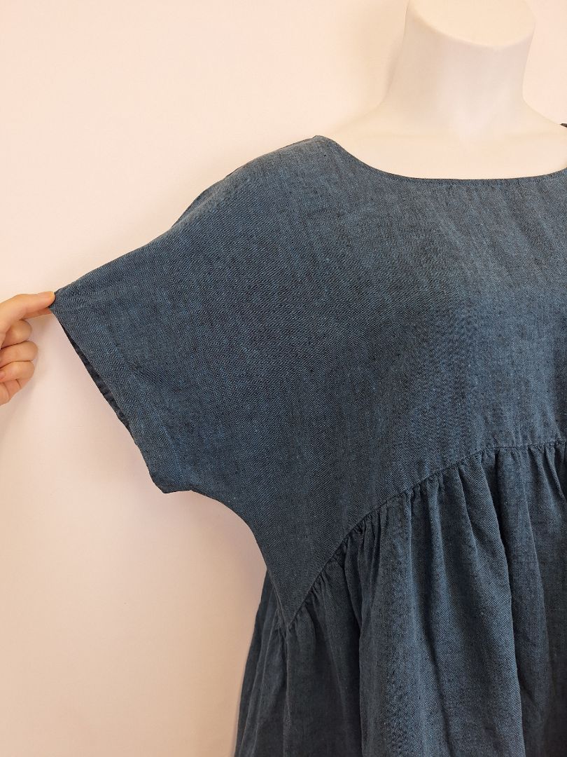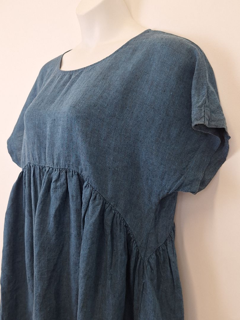Gorman Washed Blue Gathered Summer Swing Dress Size L