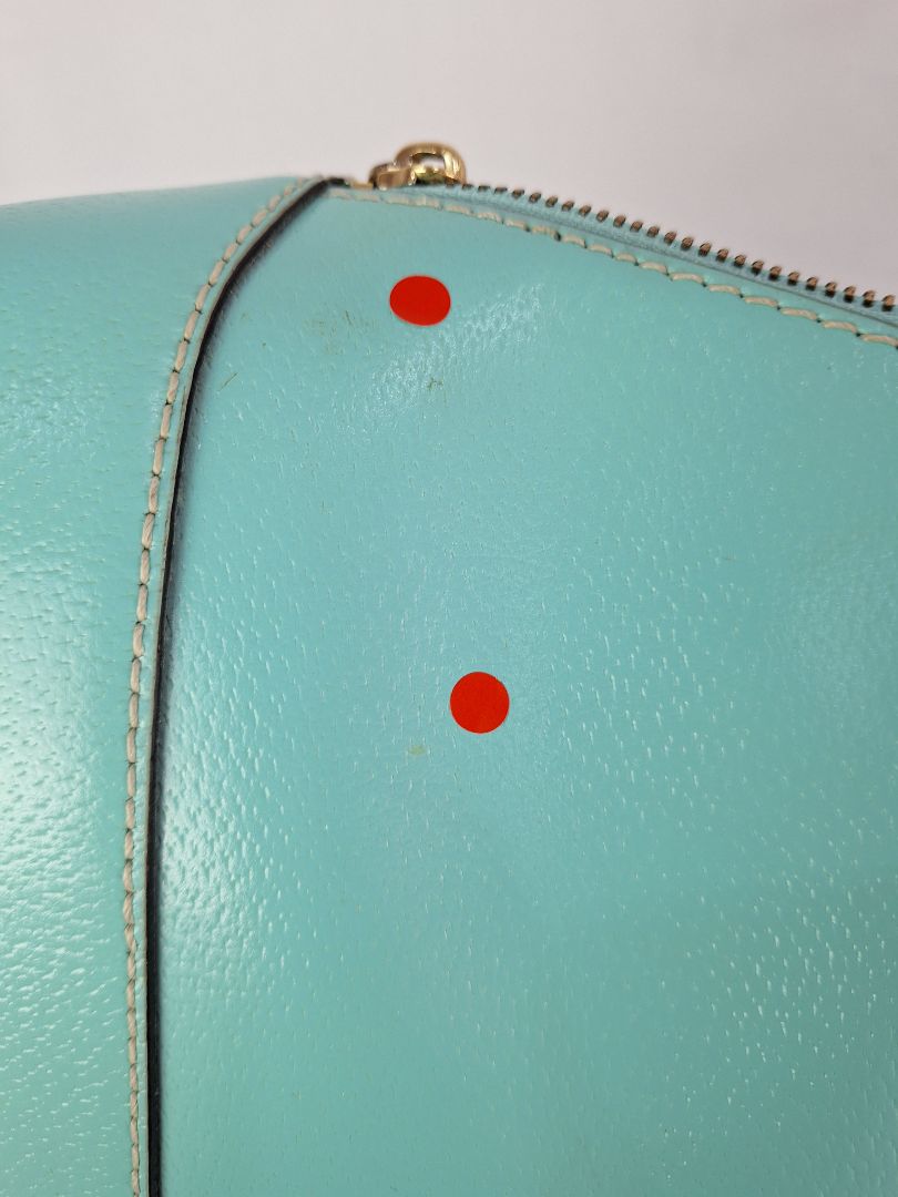 Overall light wear. Some small marks and light scuffing on outer. Light scratching to hardware. Some small marks on lining. Edge paint coming off on handle.