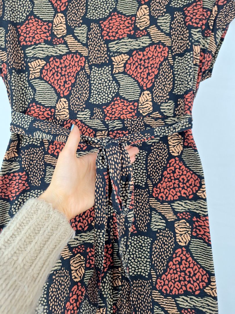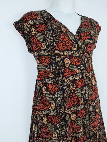 Keshet Ochre Earthy Patterned Wrap Dress Size L