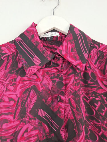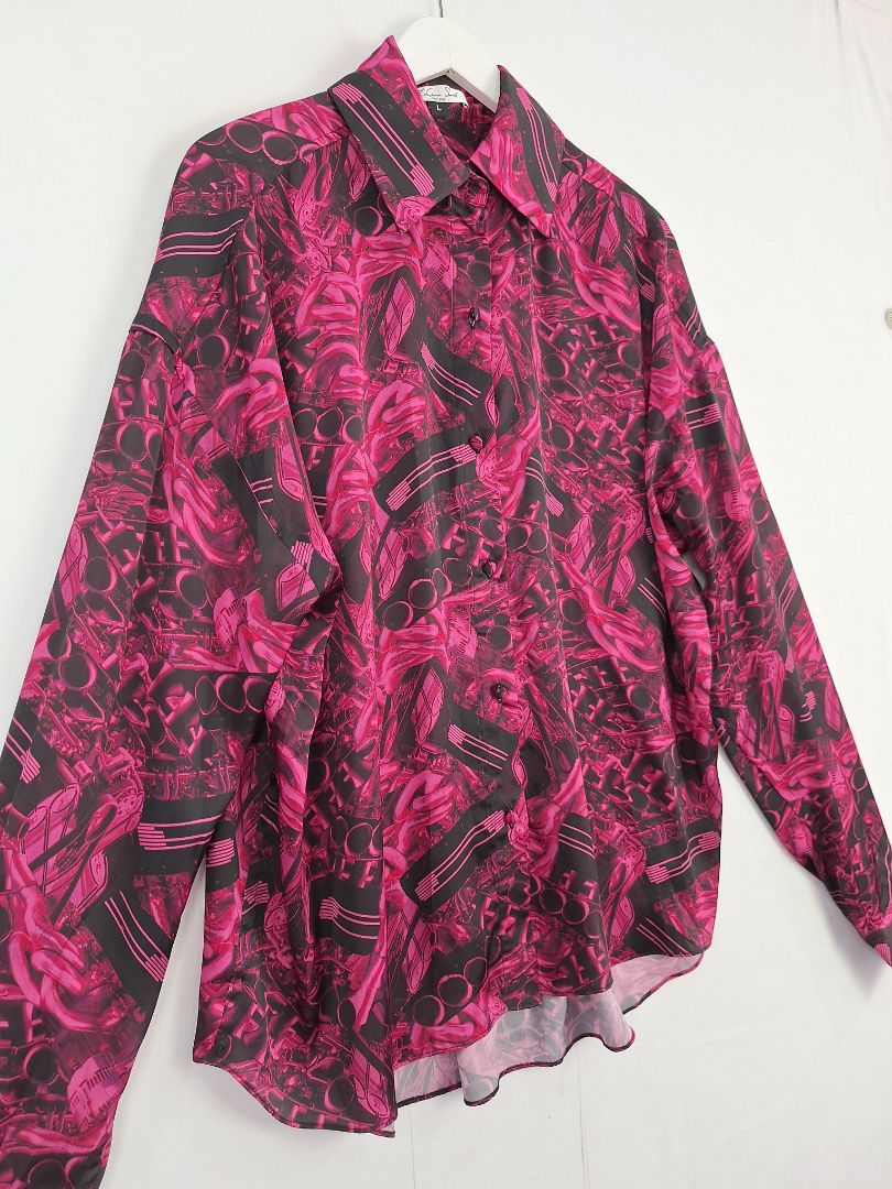 LaQuan Smith Engine Print Oversized Button Down Shirt Size L