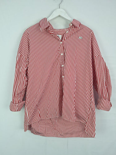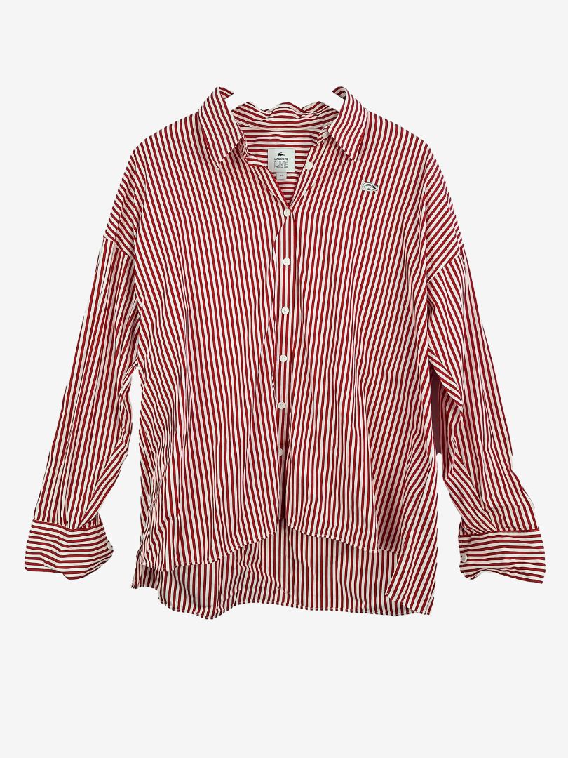 Lacoste Cherry Red Stripe Boxy Shirt Size 12