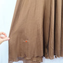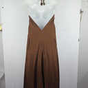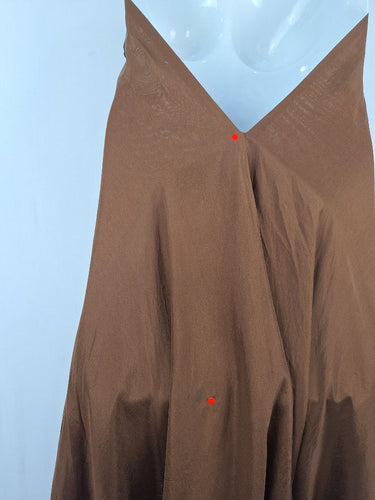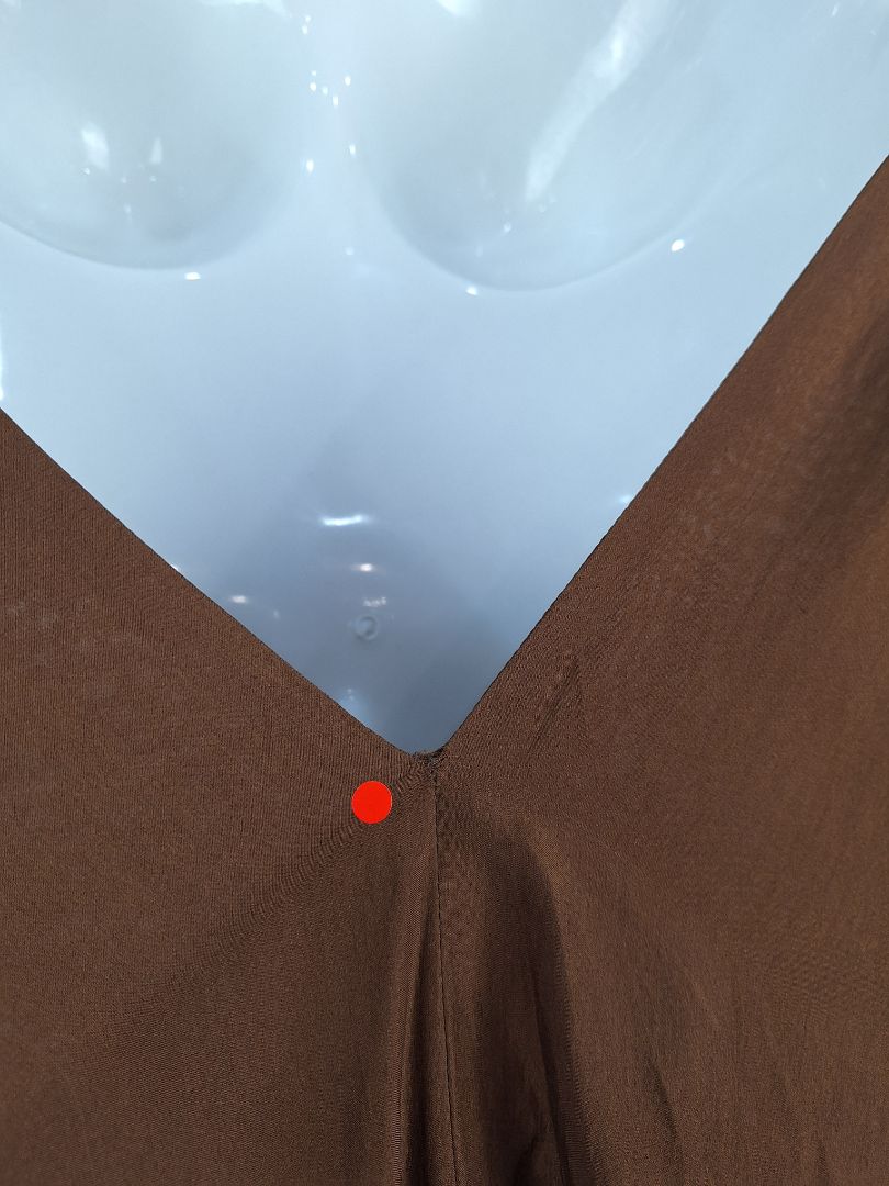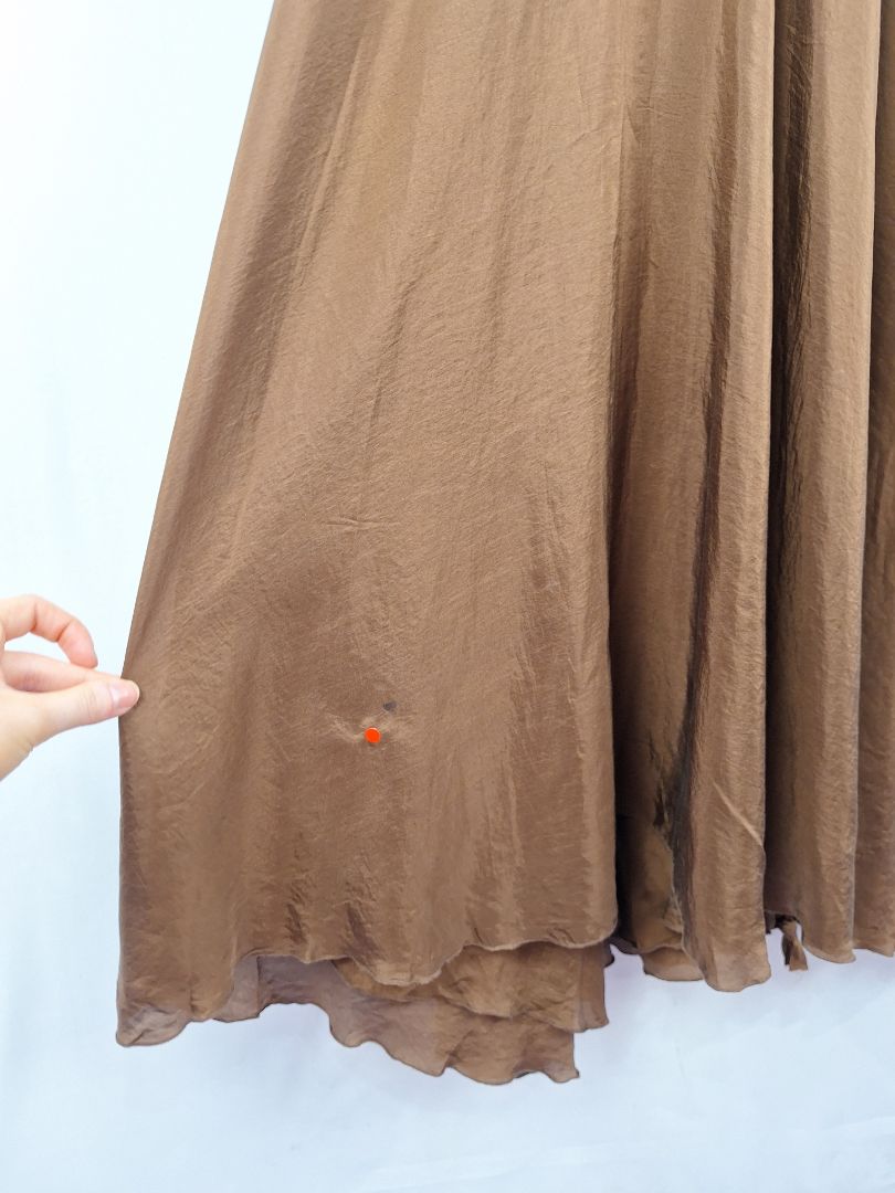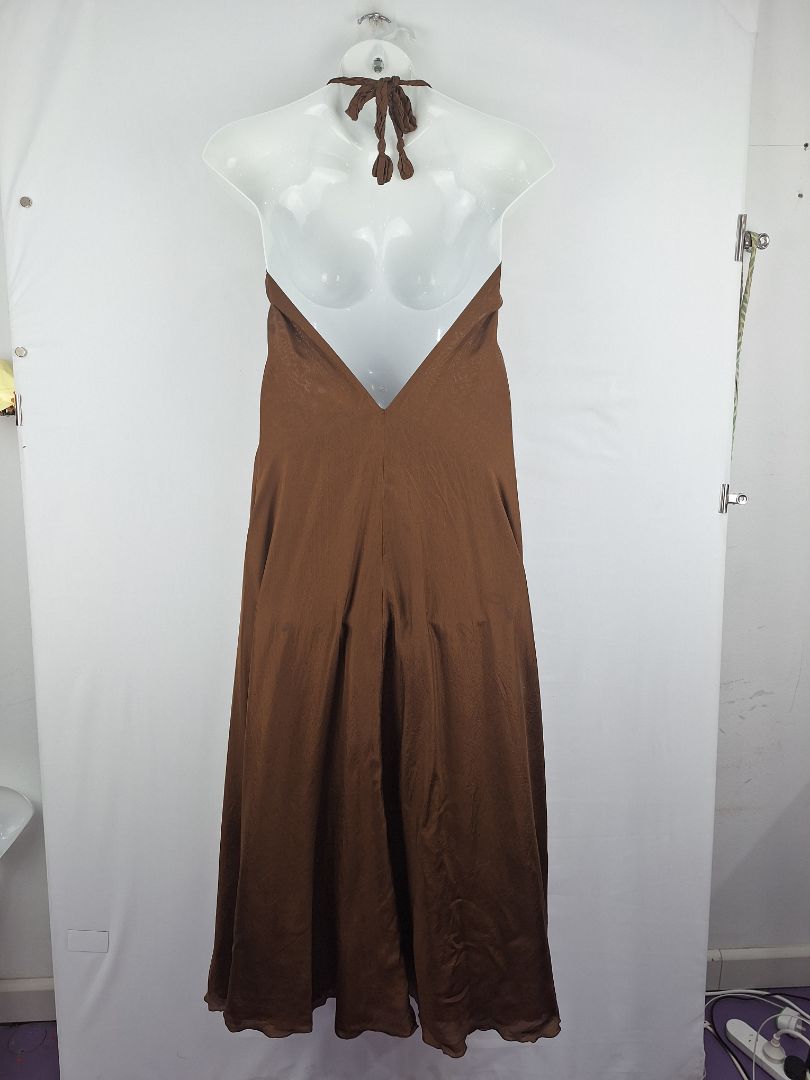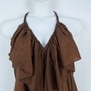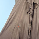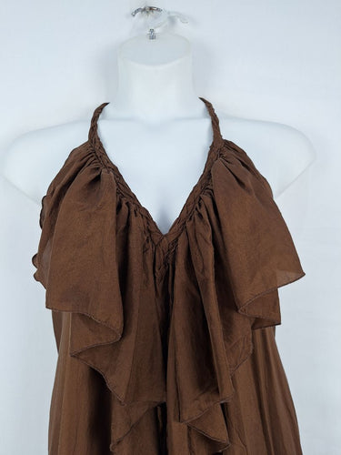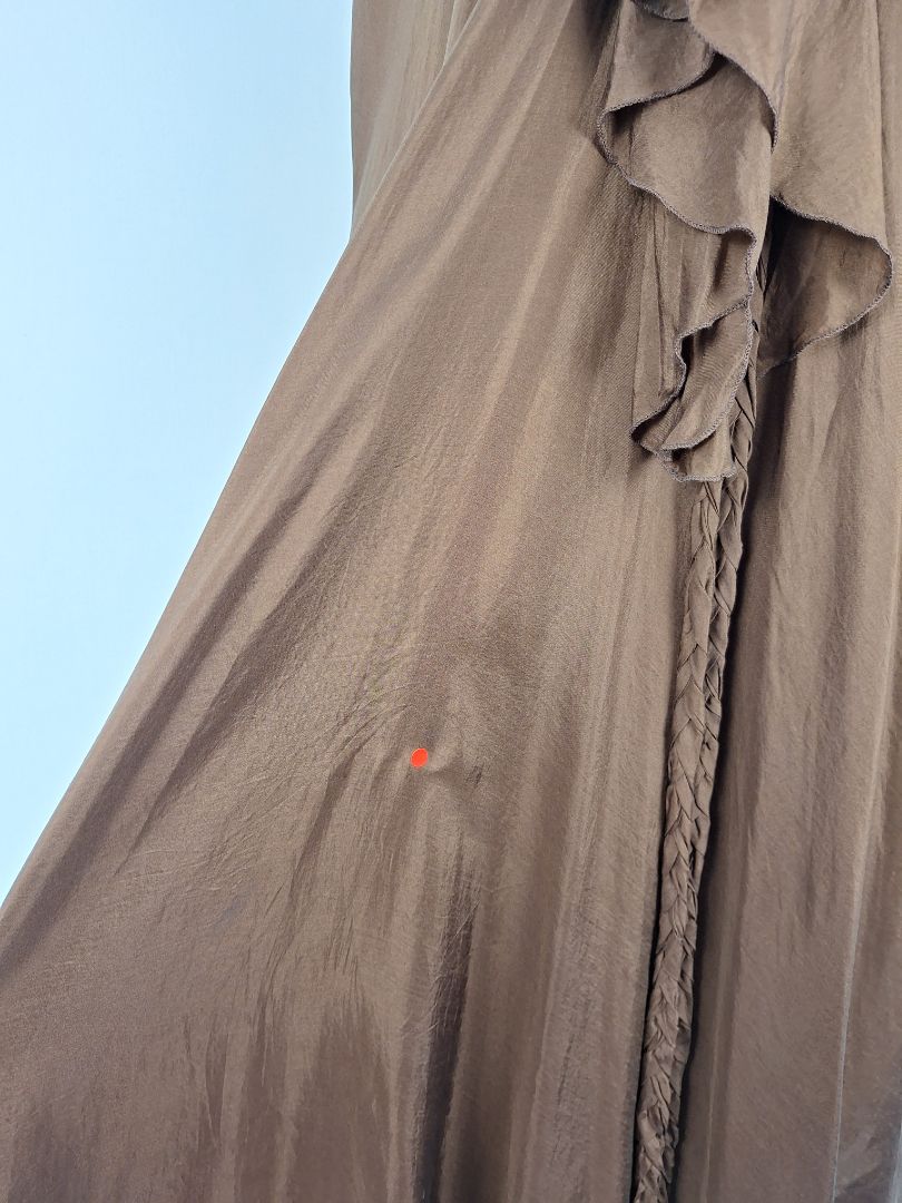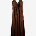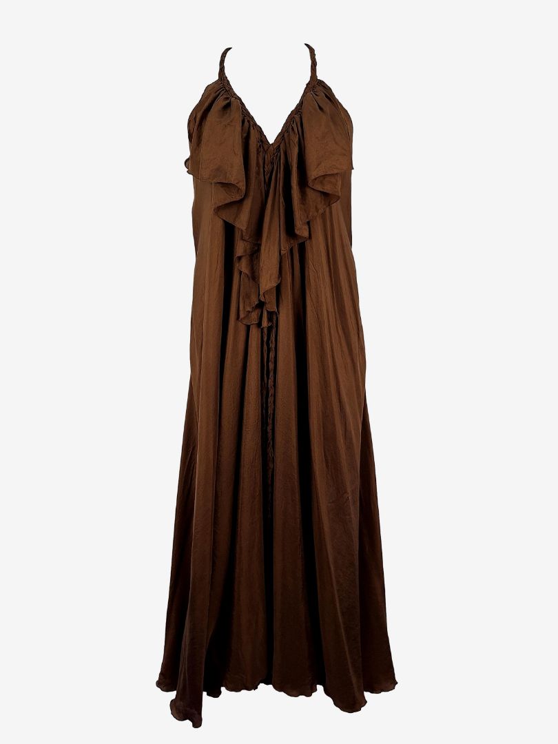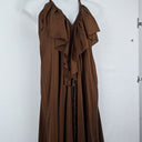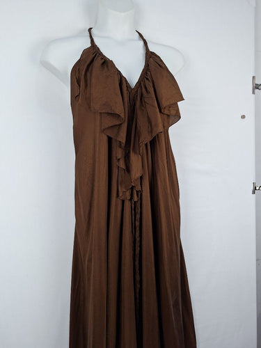 Lisa Brown Elegant Brown V Neck Ruffle Silk Dress One Size