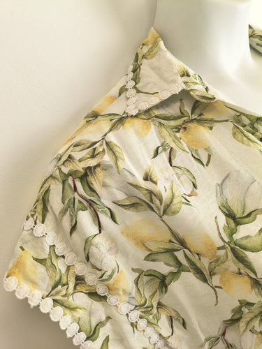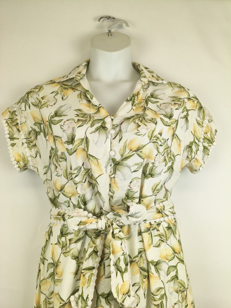 Little Coquille Lemon Bouquet Collared Midi Dress Size 12