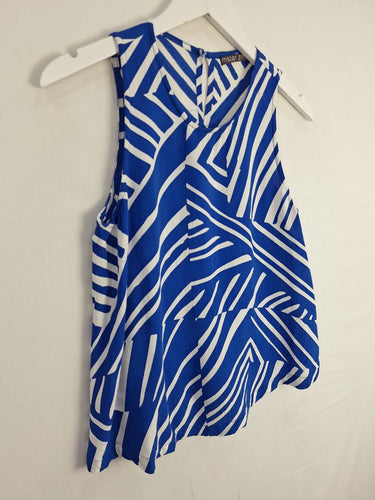Mister Zimi Electric Blue Geo Sleeveless Blouse Size 10