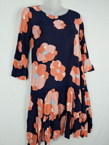 Mister Zimi Peach Flower Shift Midi Dress Size 8