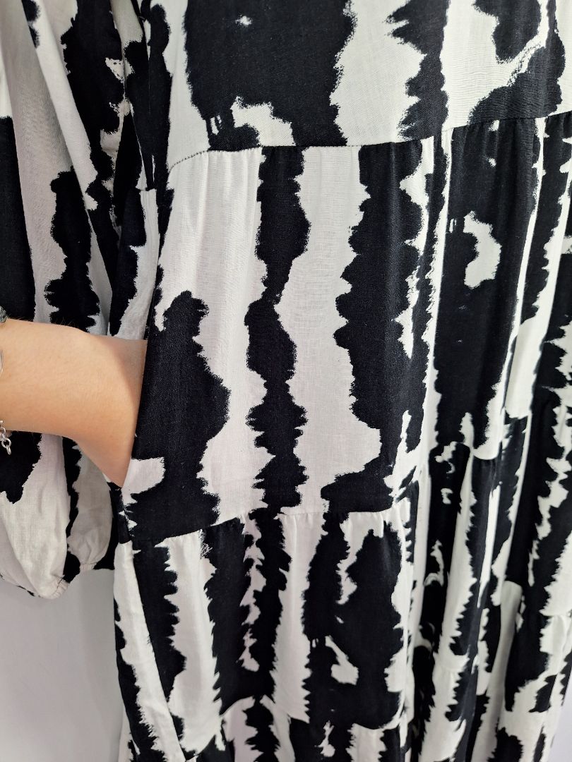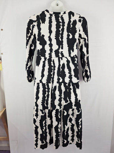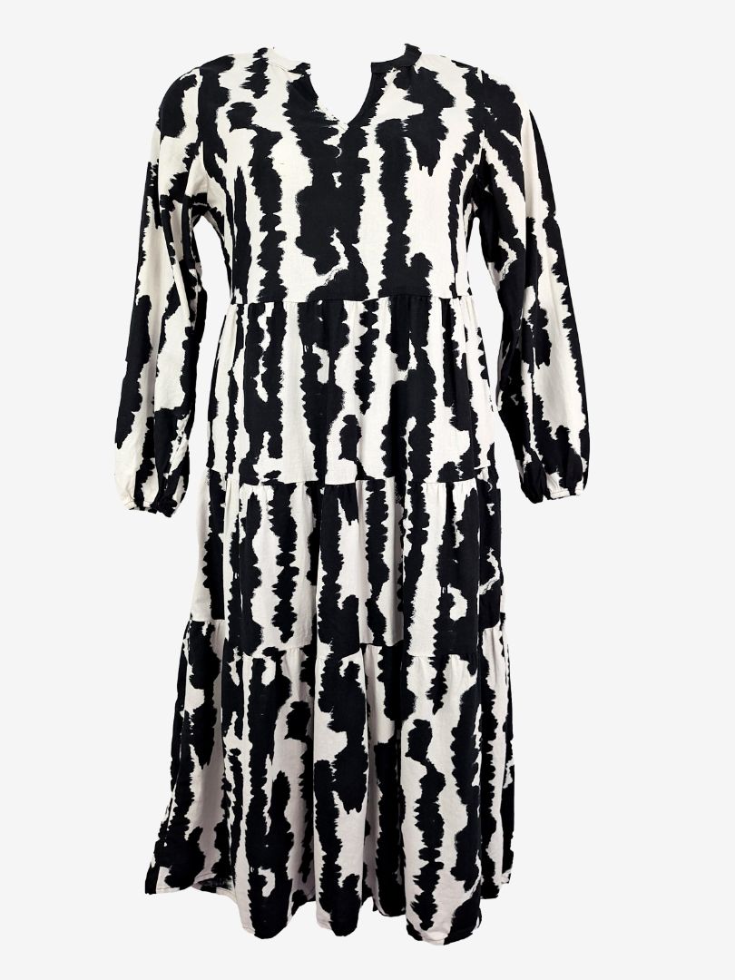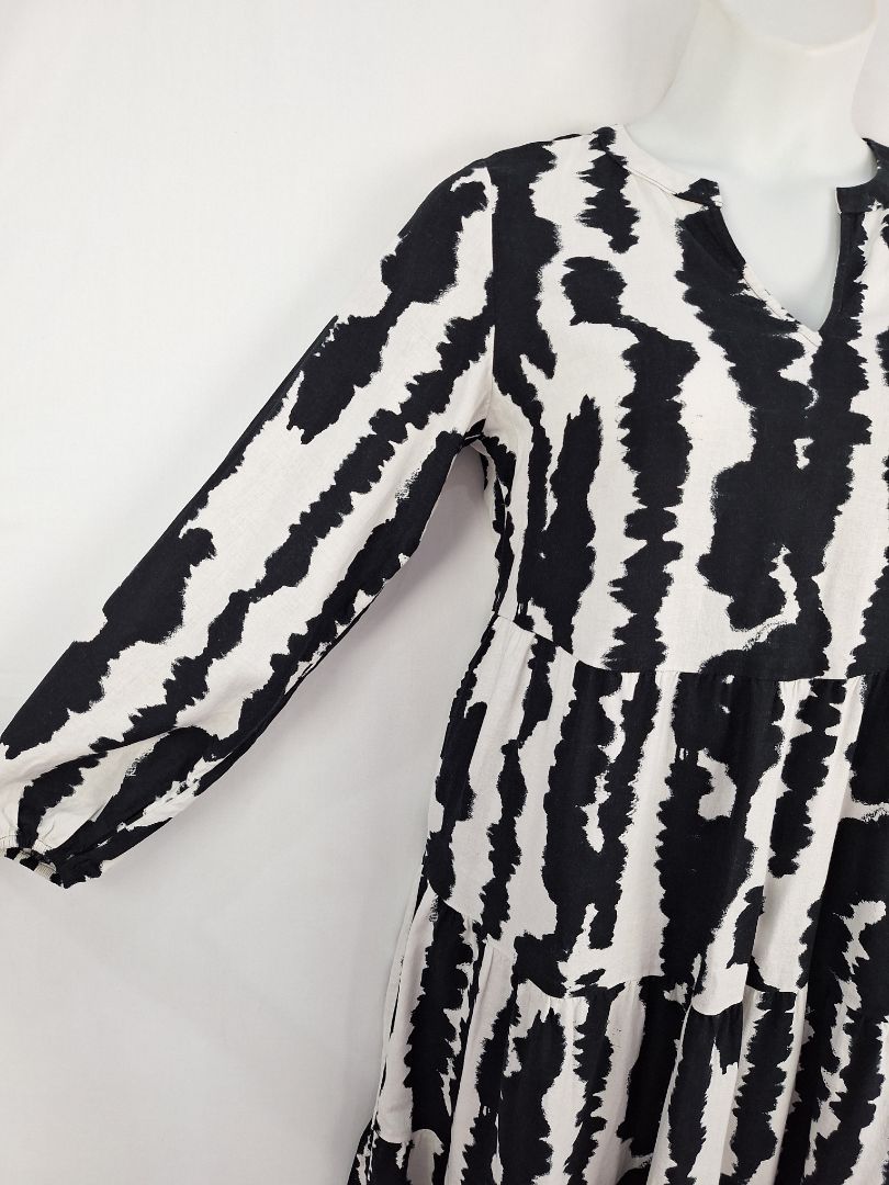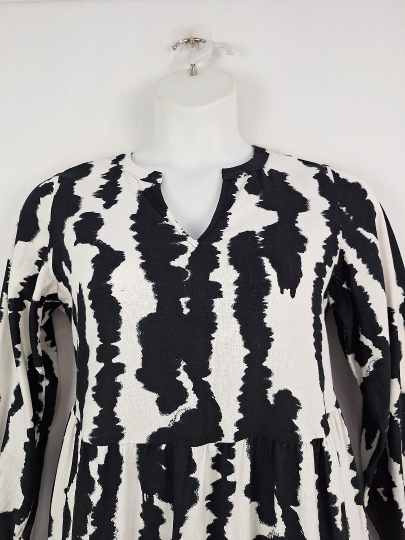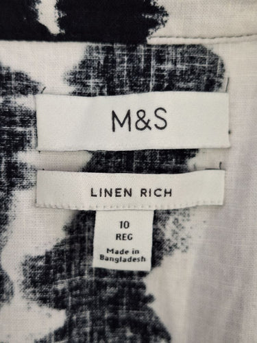 M&S Linen Blend Ink Blot Maxi Dress Size 10