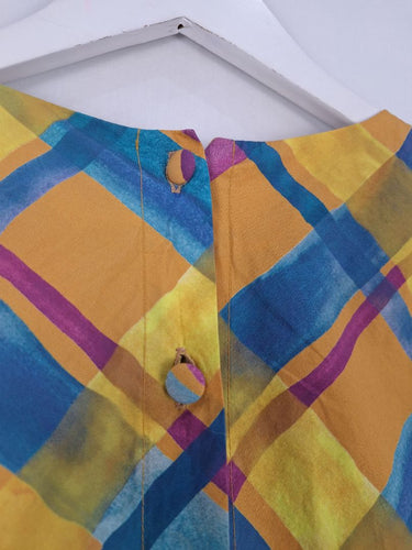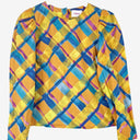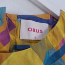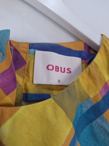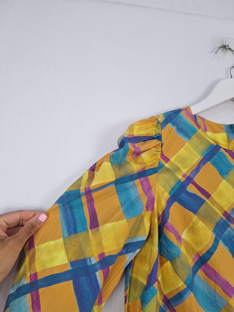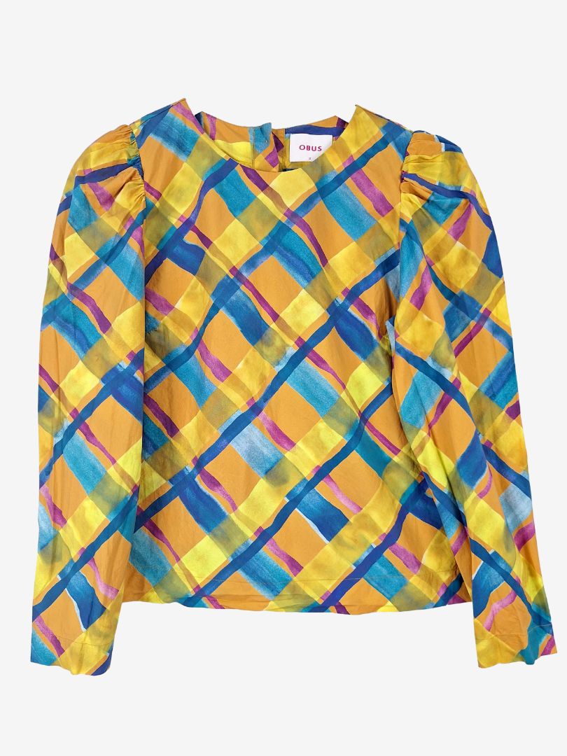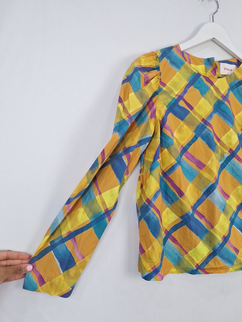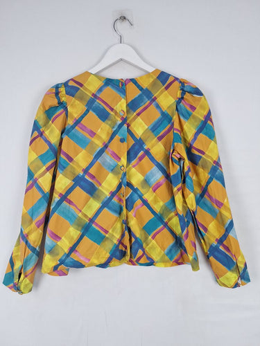 Obus Watercolour Crosshatch Puff Shoulder Blouse Size M