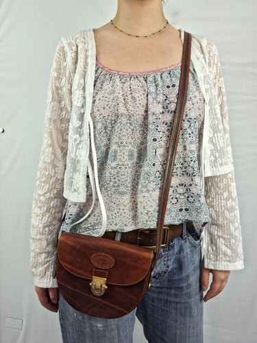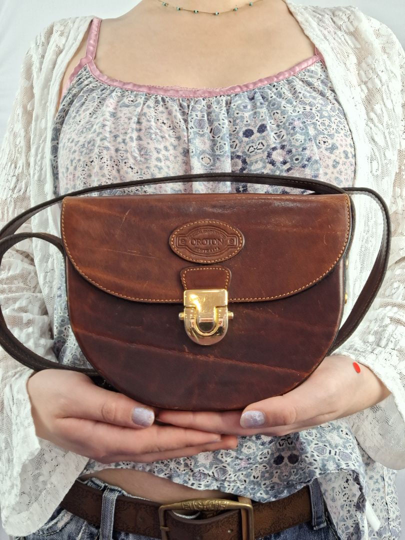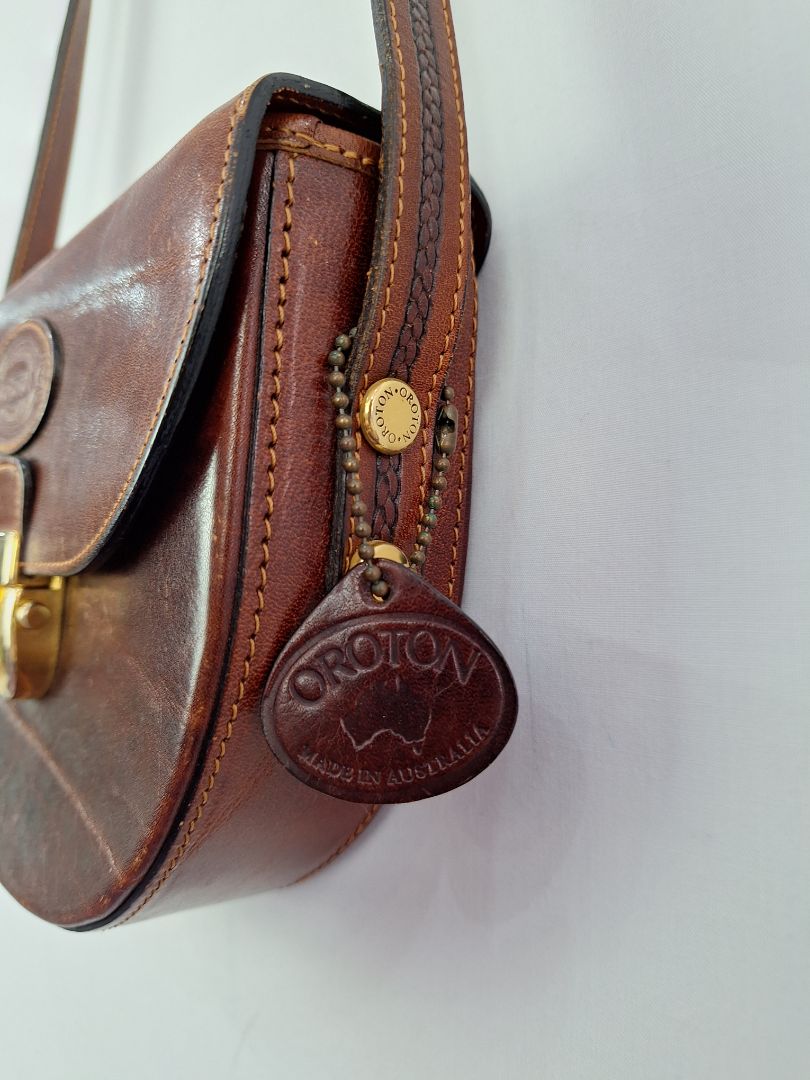 Oroton Vintage Leather Structured Mini Saddle Bag