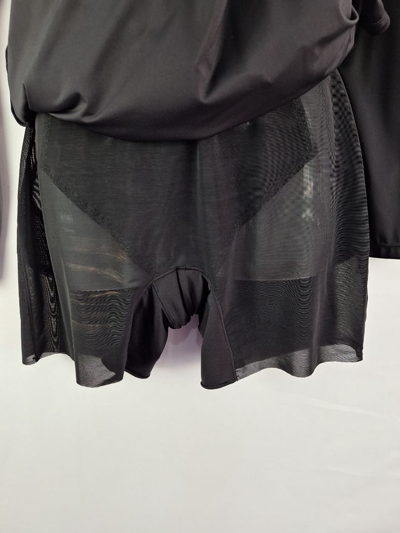 Scattered white marks near bottom of dress. Built in shapewear shorts and bralette. Marks on mesh shorts.