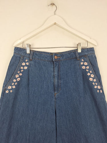 Princess Highway Cherry Blossom Embroidered High Rise Jeans Size 14