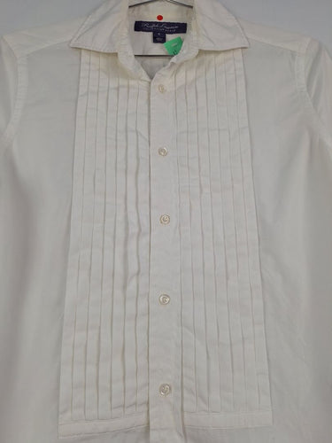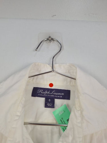 Ralph Lauren Purple Label Rare White Pleat Button Up Shirt Size 6