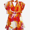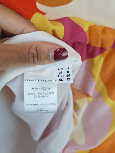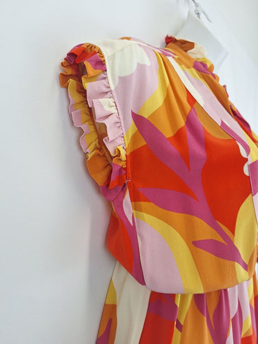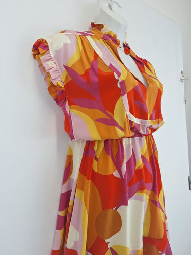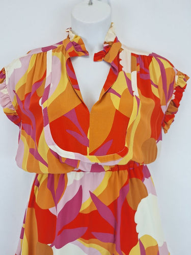 Rebecca Vallance Sunset Abstract Print Frilly Mini Dress Size 12