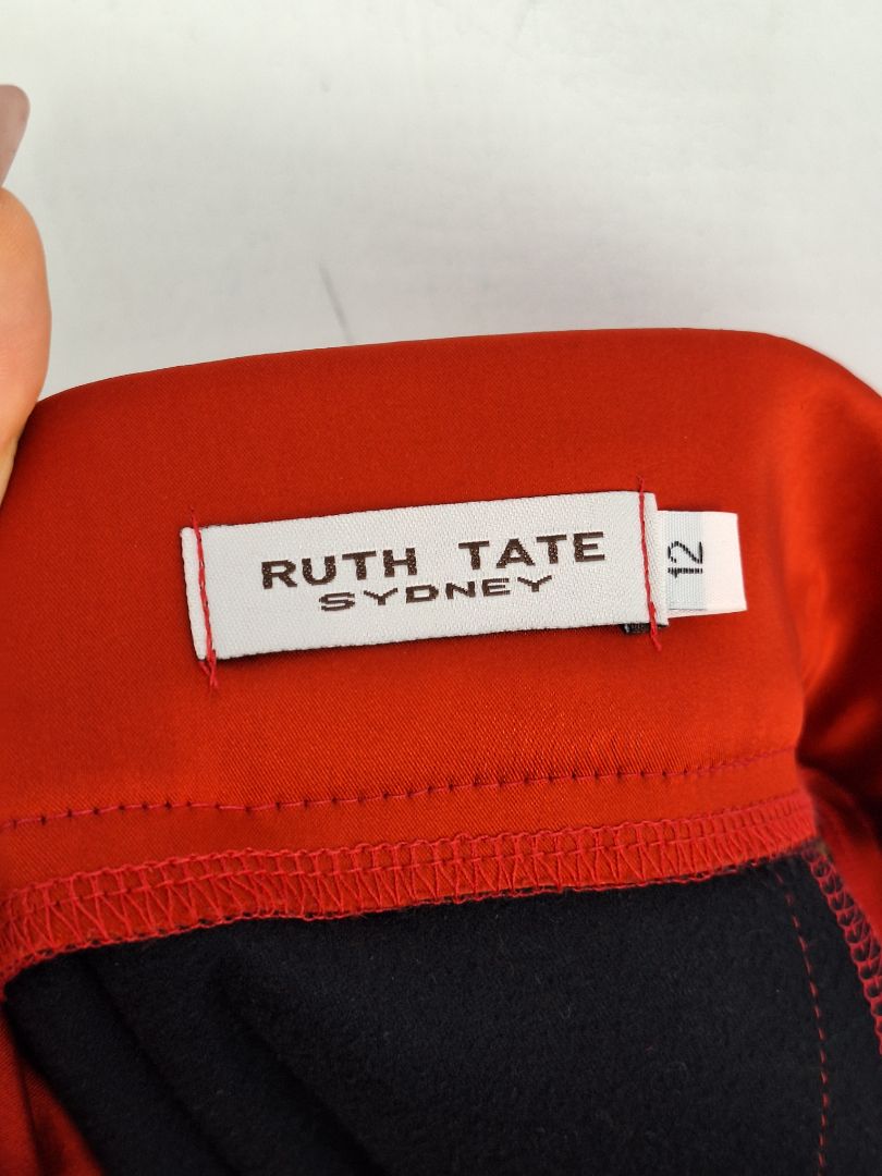 Ruth Tate Apple Front Pleat Heavy Satin Skirt Size 12