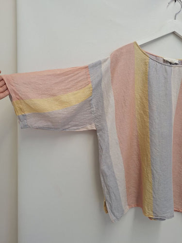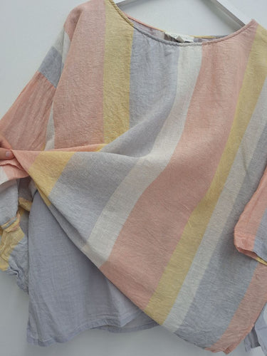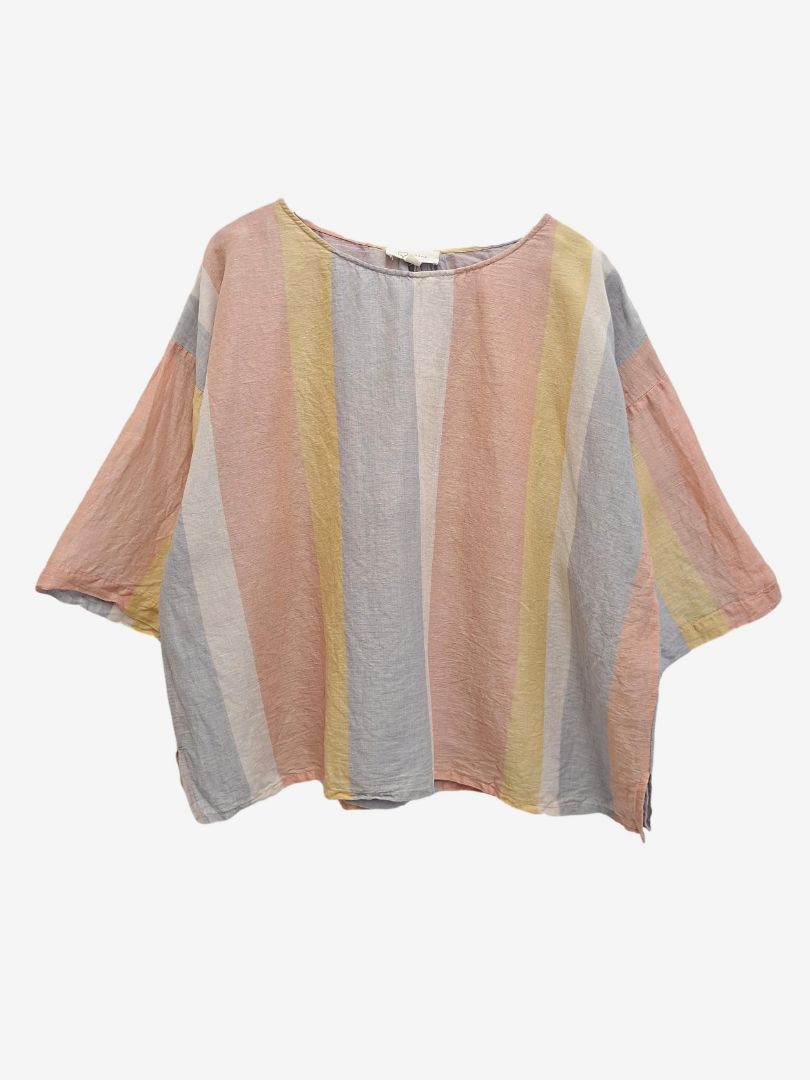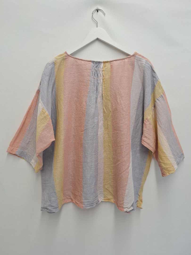 Sahana Pastel Stripe Linen Blend Blouse Size L