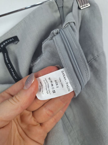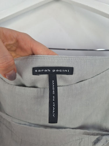 Sarah Pacini Mid Grey Pure Linen Palazzo Pants Size M