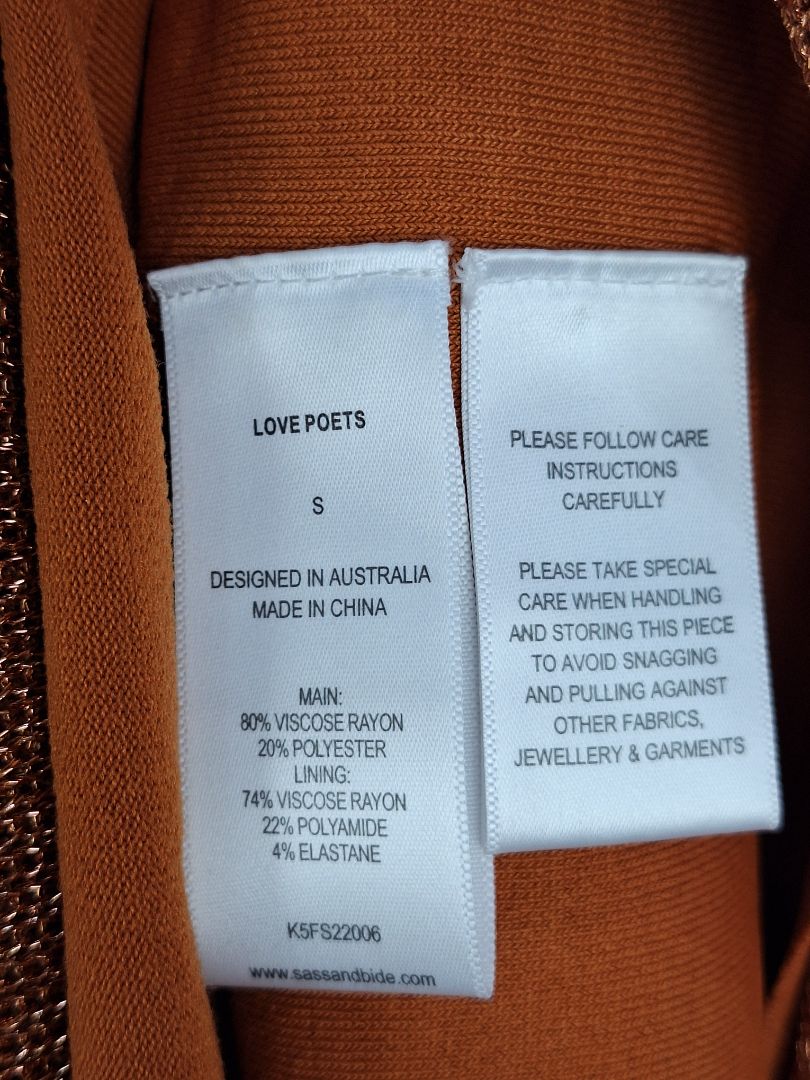 Sass & Bide Rose Gold Chain Style Knit Slip Dress Size S