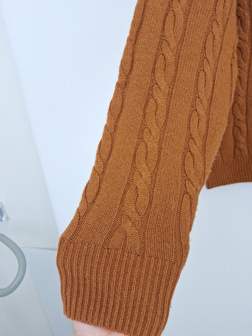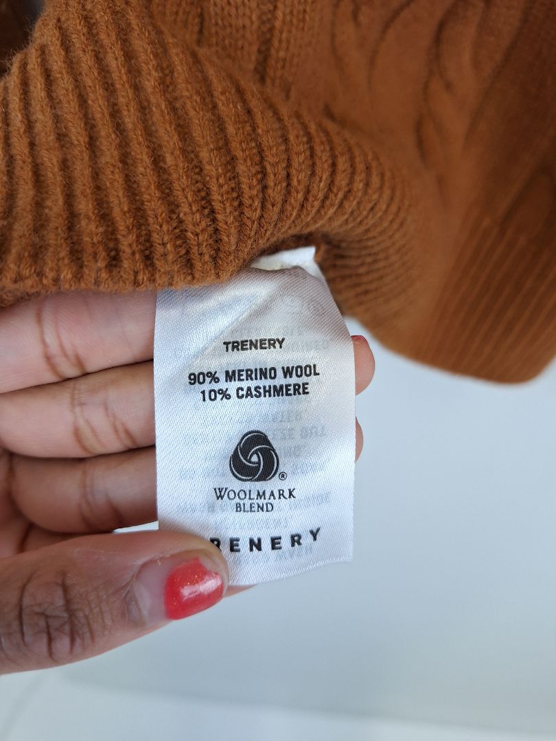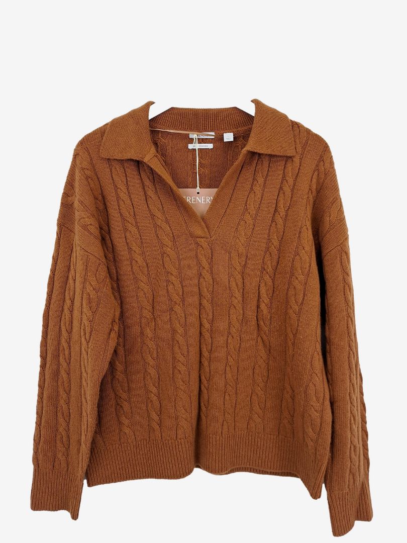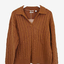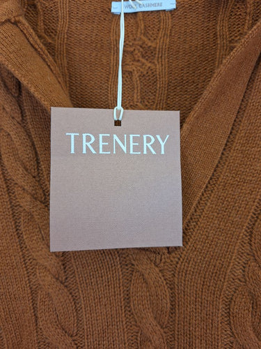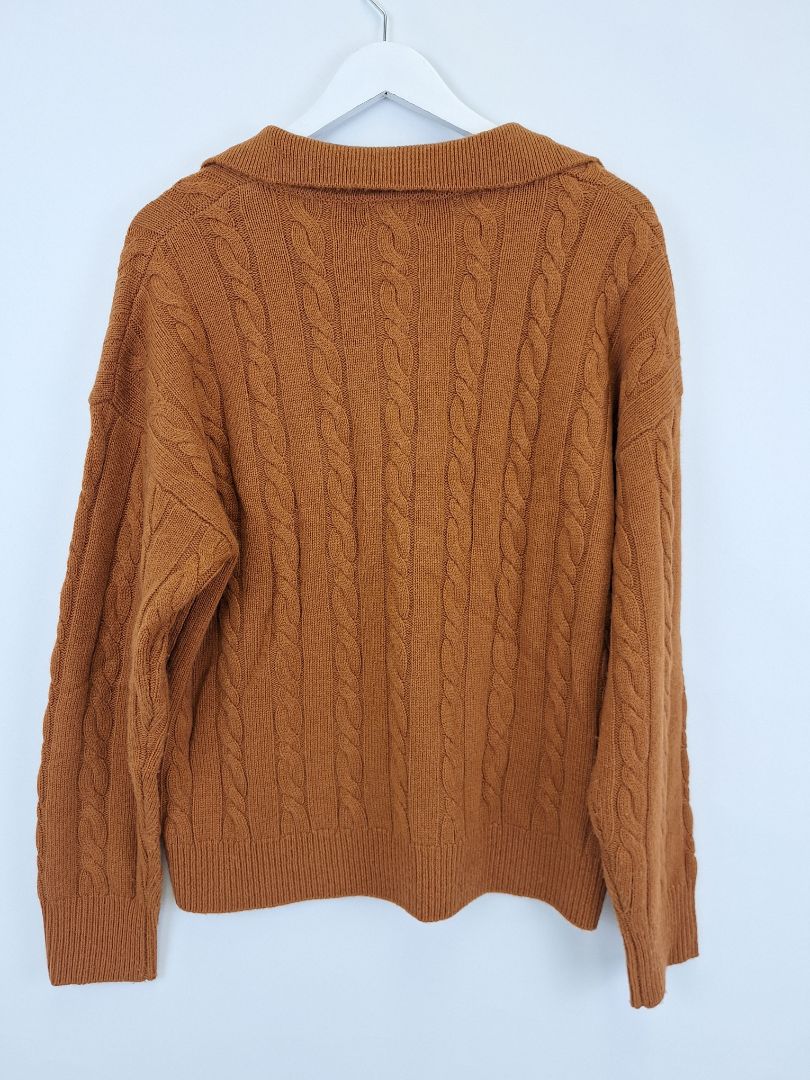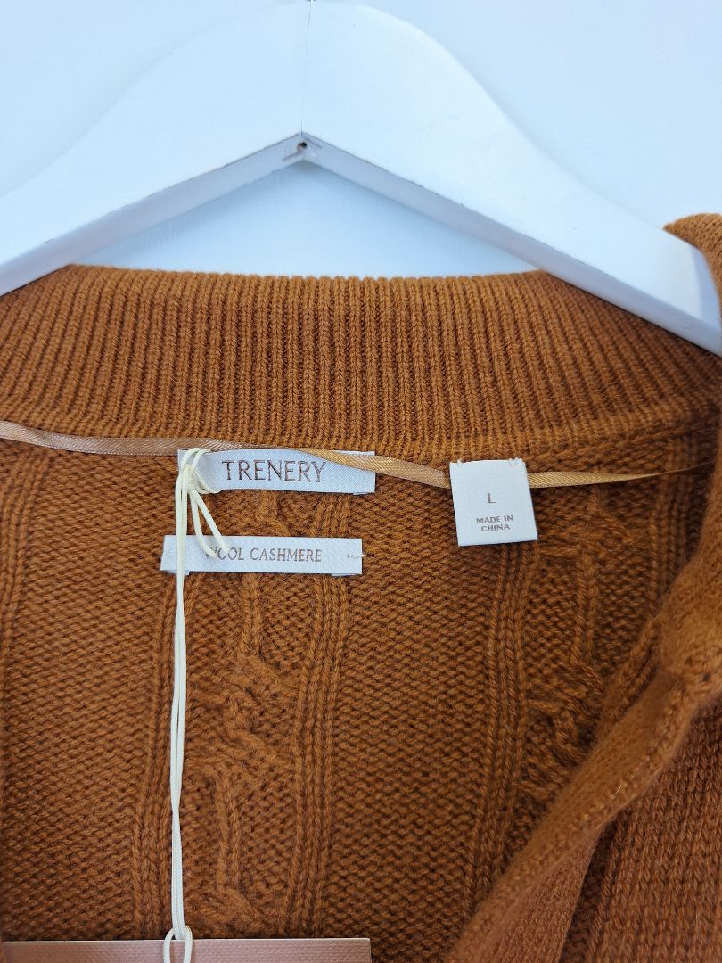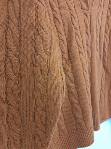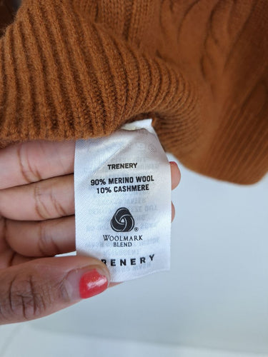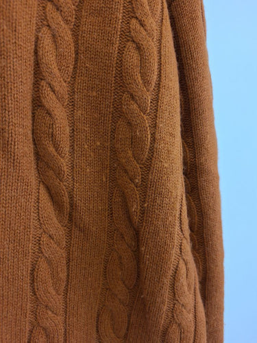 Trenery Cognac Merino Cashmere Cable Knit Polo Jumper Size L