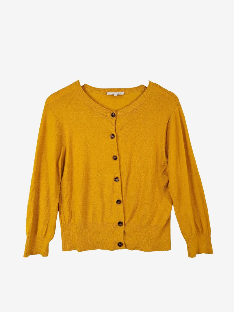 Veronika Maine Dusky Yellow Button Down Cardigan Size L
