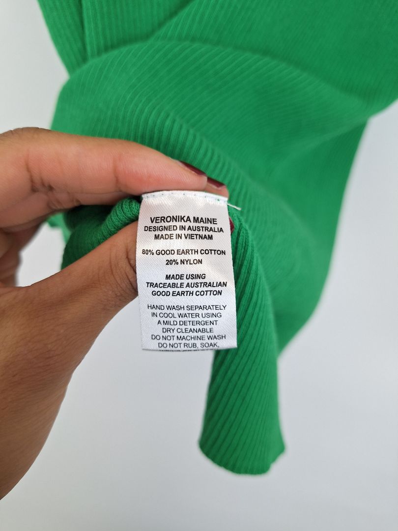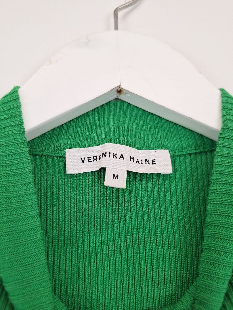 Veronika Maine Meadow Green Ribbed Top Size M