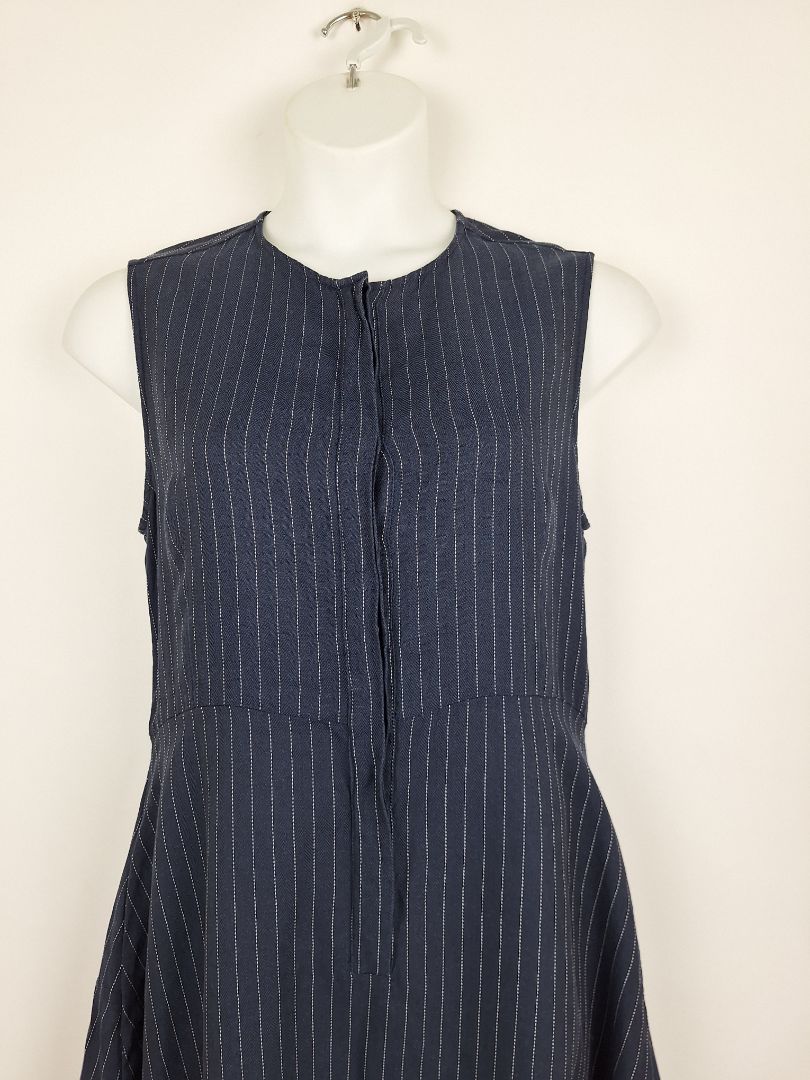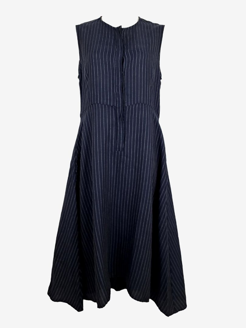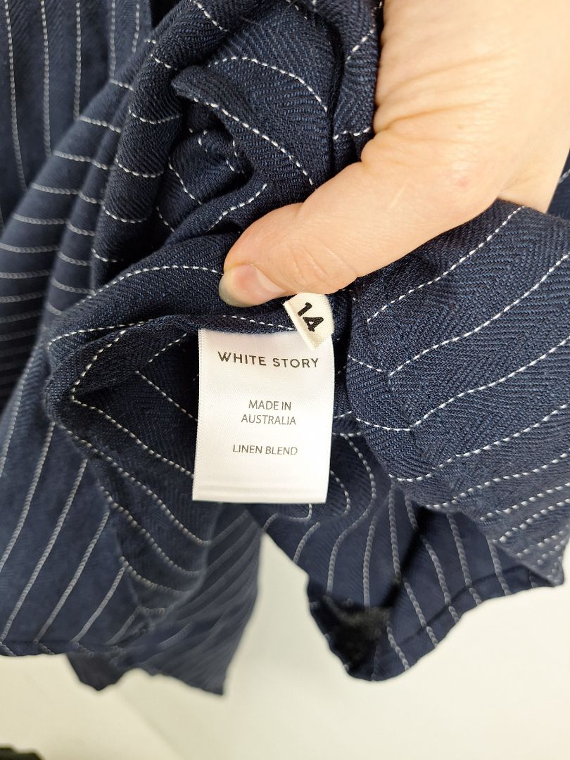 White Story Classic A-line Pinstripe Linen Dress Size 14