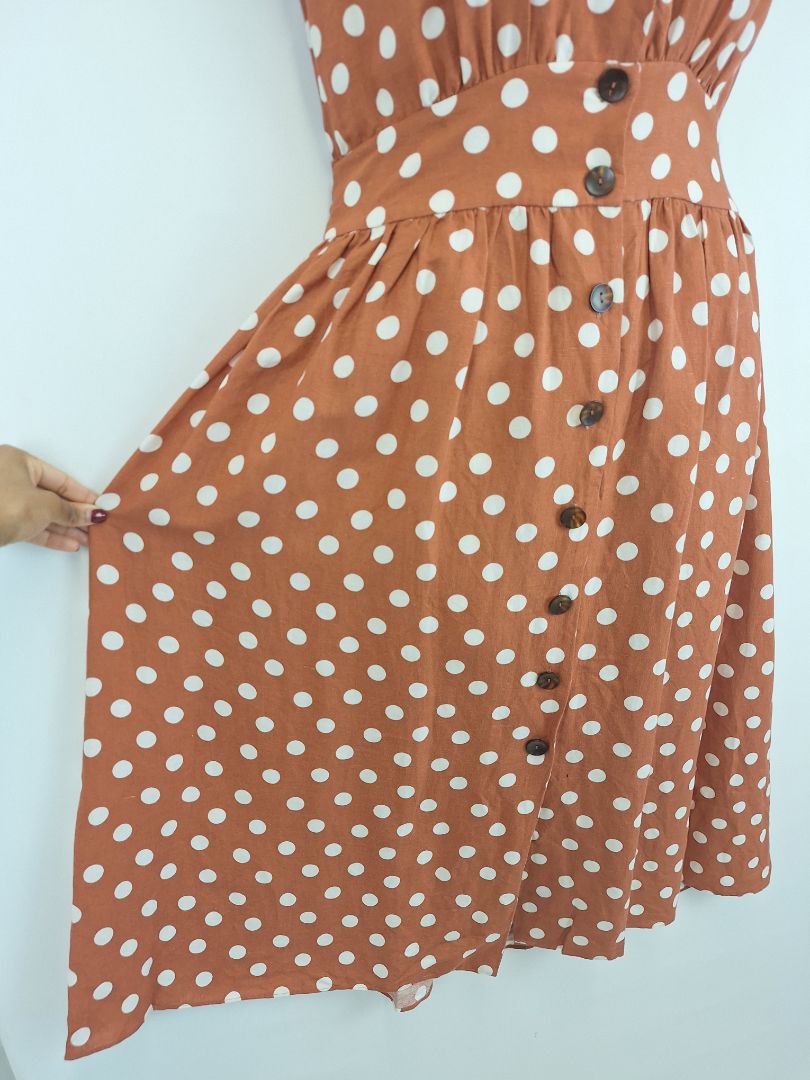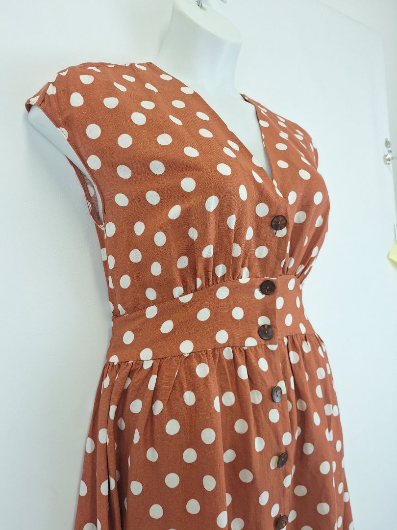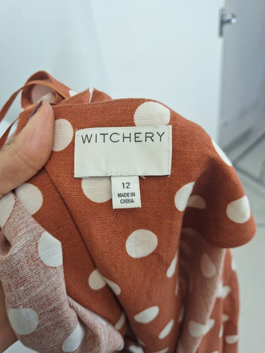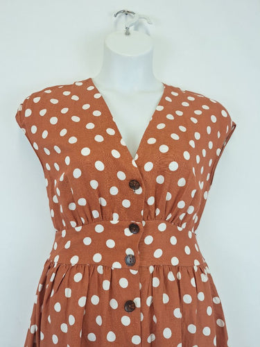 Witchery Burnt Orange Polka Dot Midi Dress Size 12