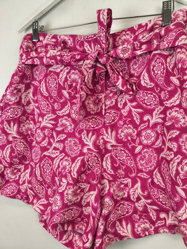 Witchery Fuchsia Floral Swirl Linen Shorts Size 14
